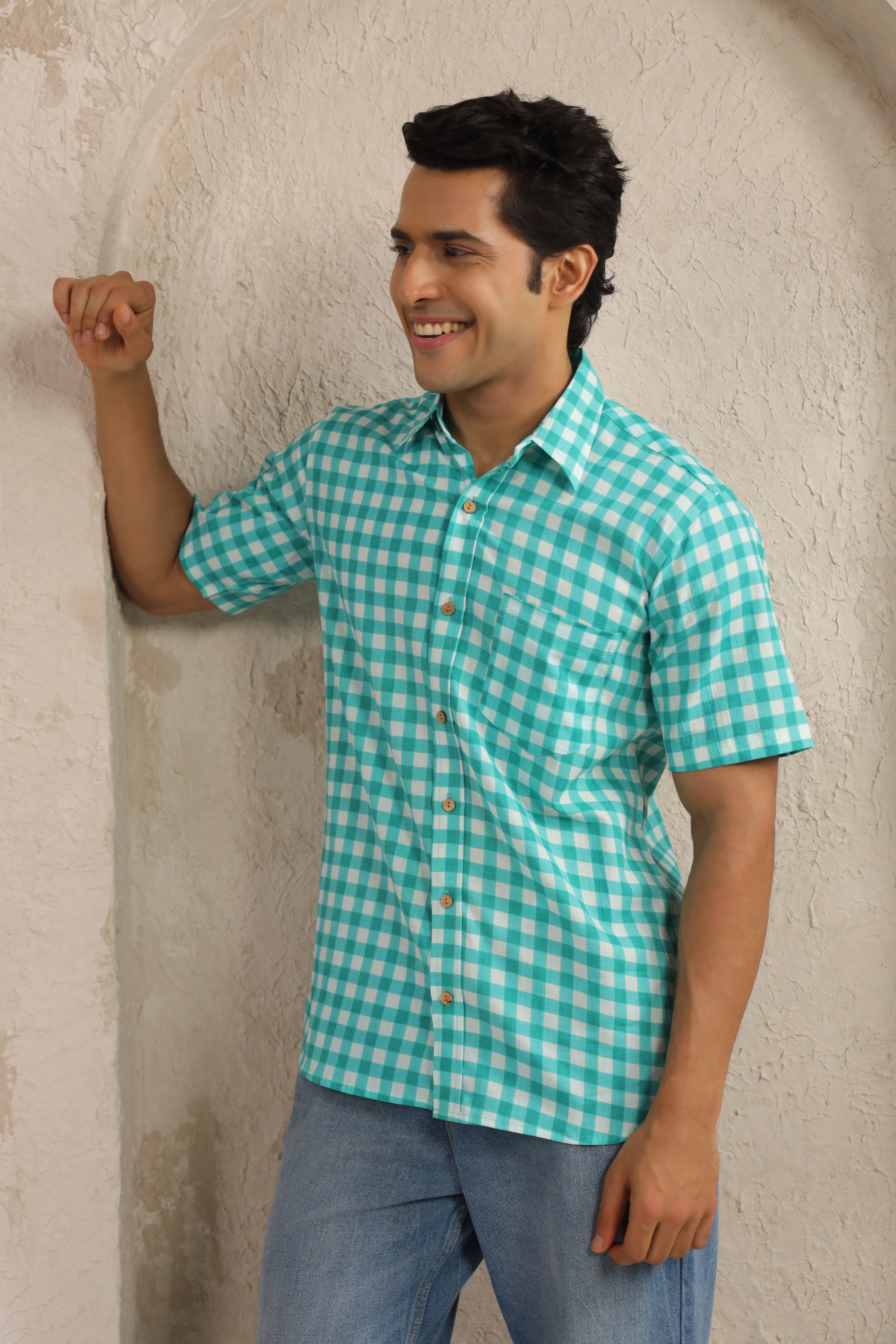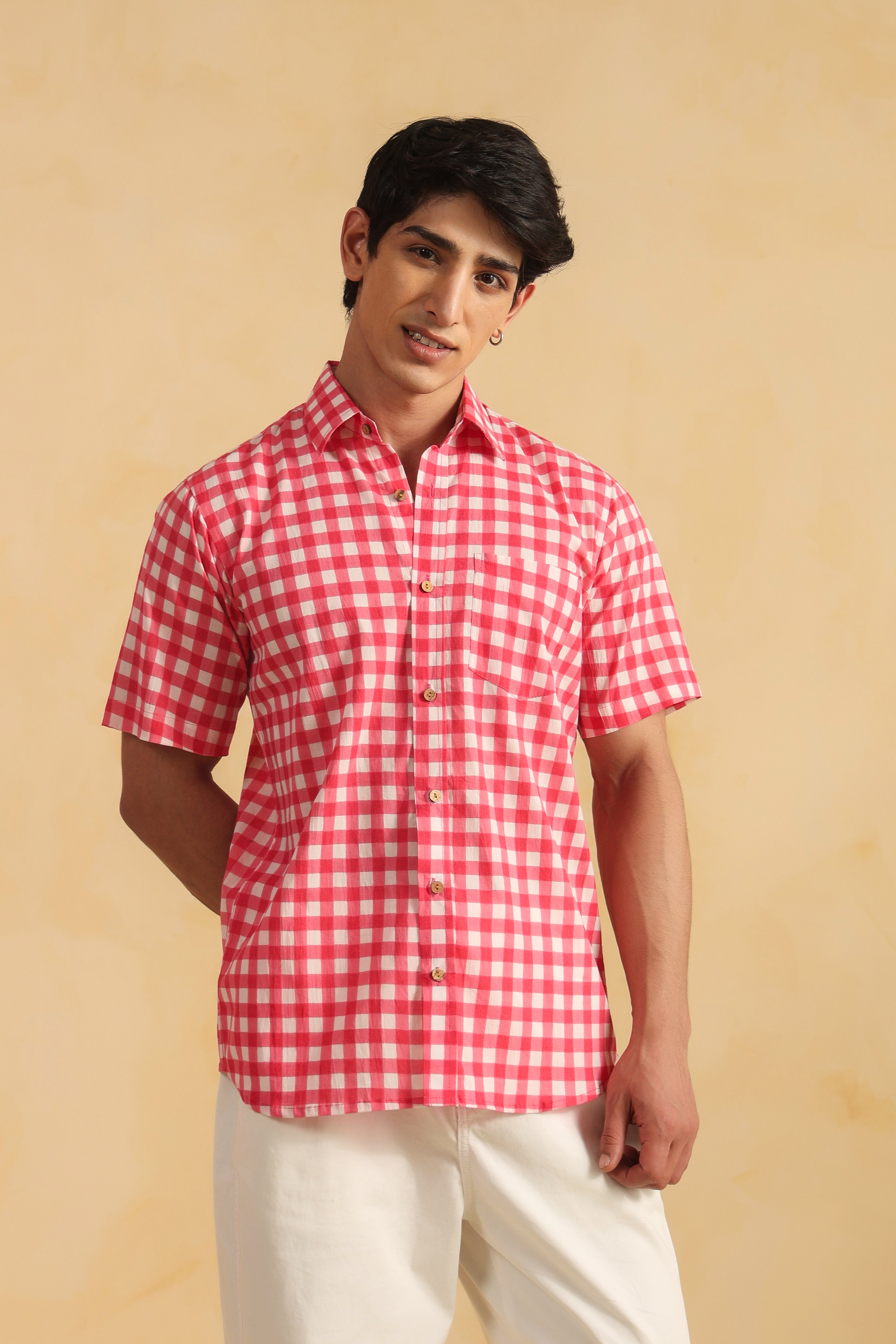Regular price Rs. 1,199Sale price Rs. 1,199 Regular price Rs. 1,499Unit price / perThis screen printed cotton shirt is made in gingham checks. This is hand stiched and made of 100% pure cotton. It is a regular fit shirt...
