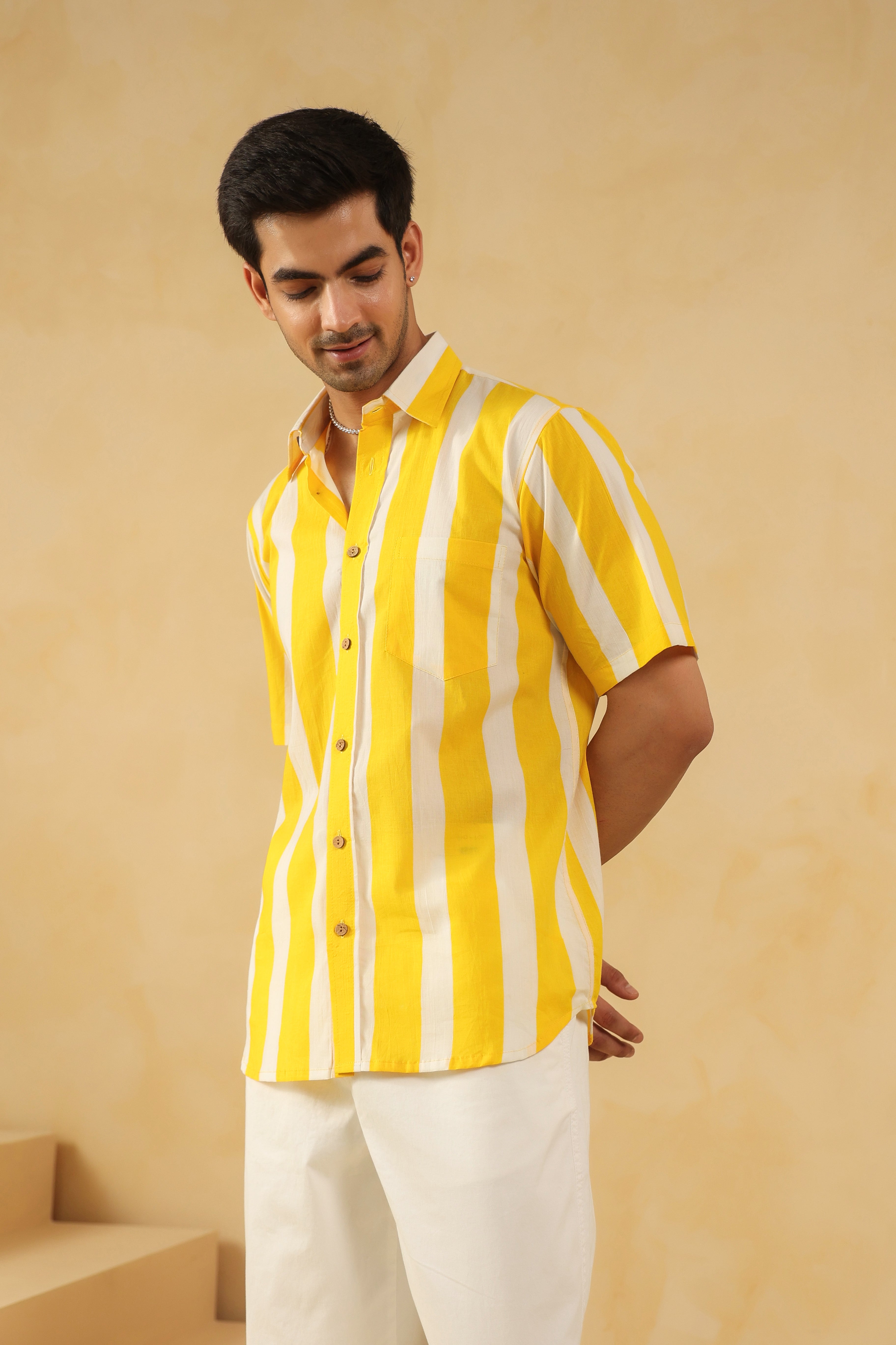 Regular price Rs. 1,199Sale price Rs. 1,199 Regular price Rs. 1,499Unit price / perThis screen printed cotton shirt is made in vertical stripes. This is hand stiched and made of 100% pure cotton. It is a regular fit shirt...