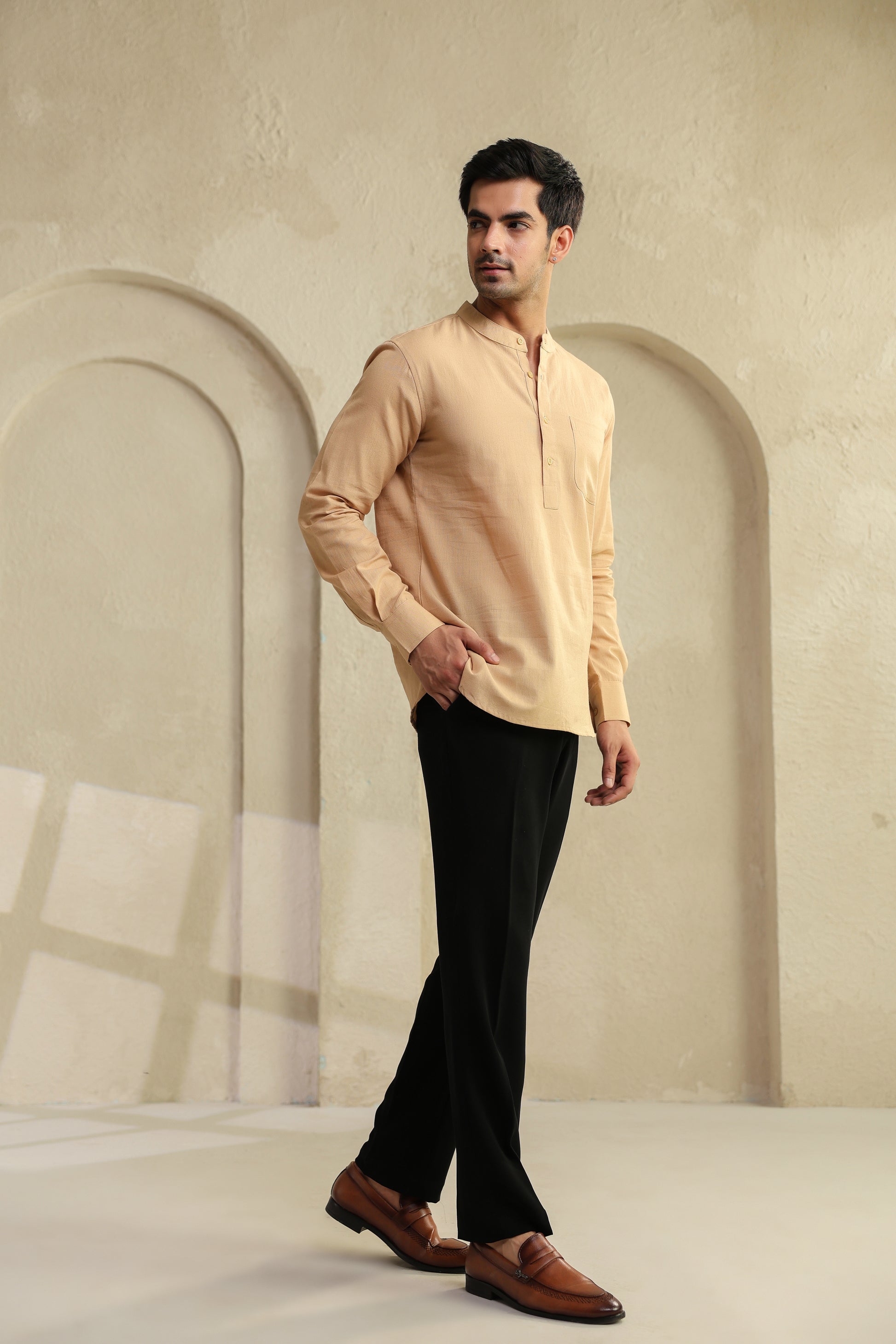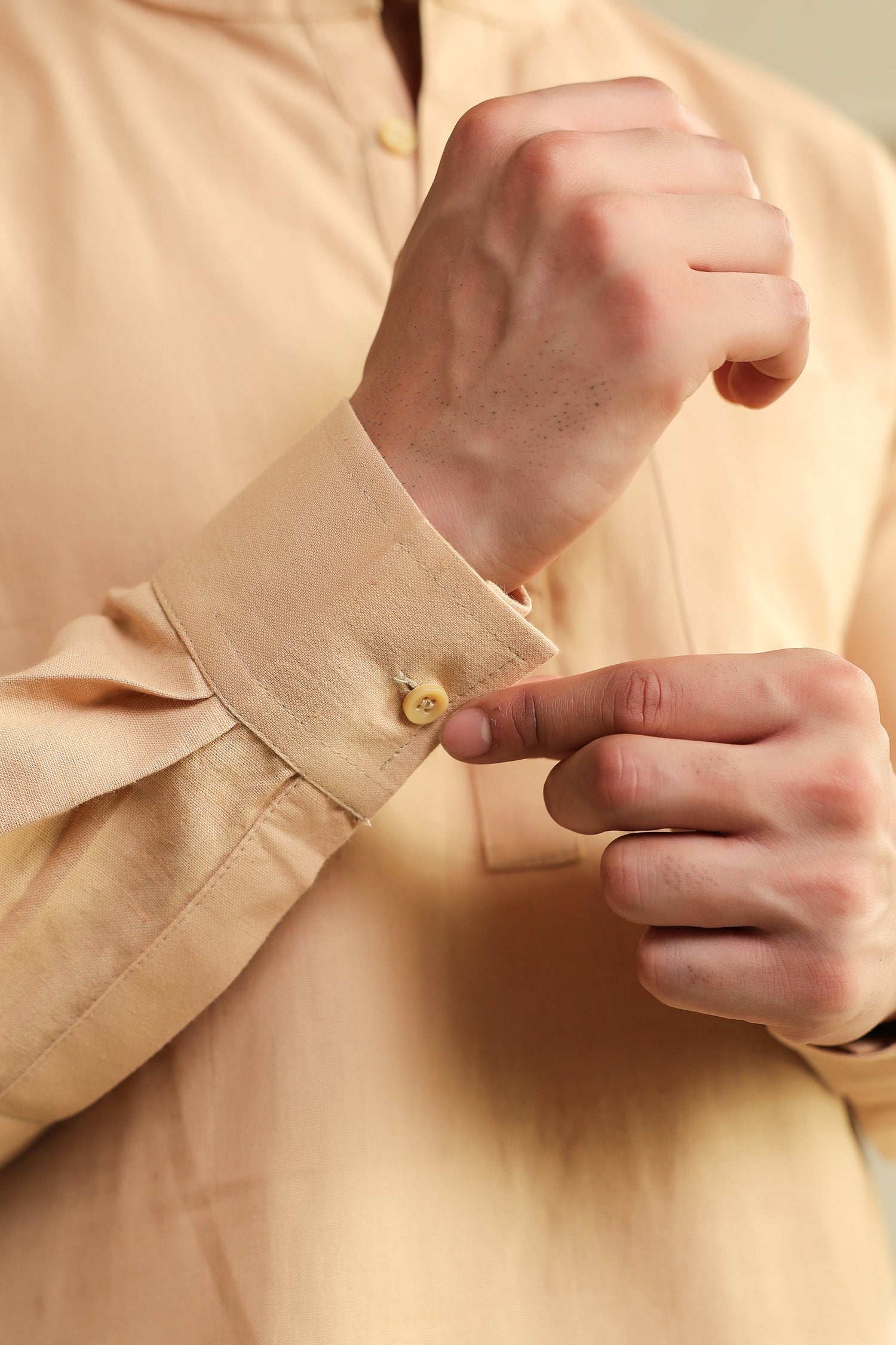 Minimal in color, rich in detail. This beige kurta is made from pure cotton that feels gentle on the skin and comfortable across seasons. The solid tone allows the craftsmanship to stand out, from the clean mandarin collar to the precise hand stitching throughout. It’s a timeless piece created for men who value simplicity done right.