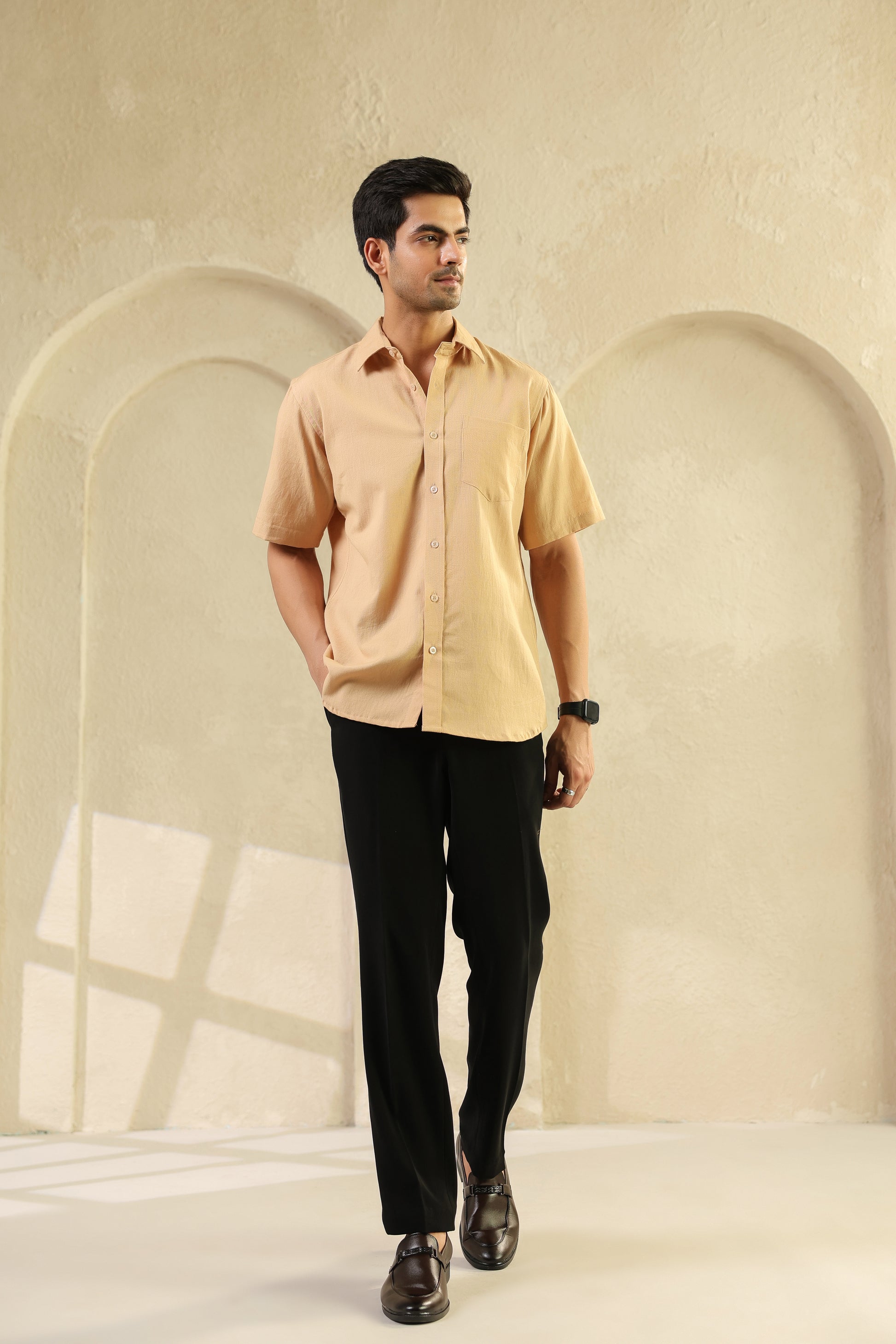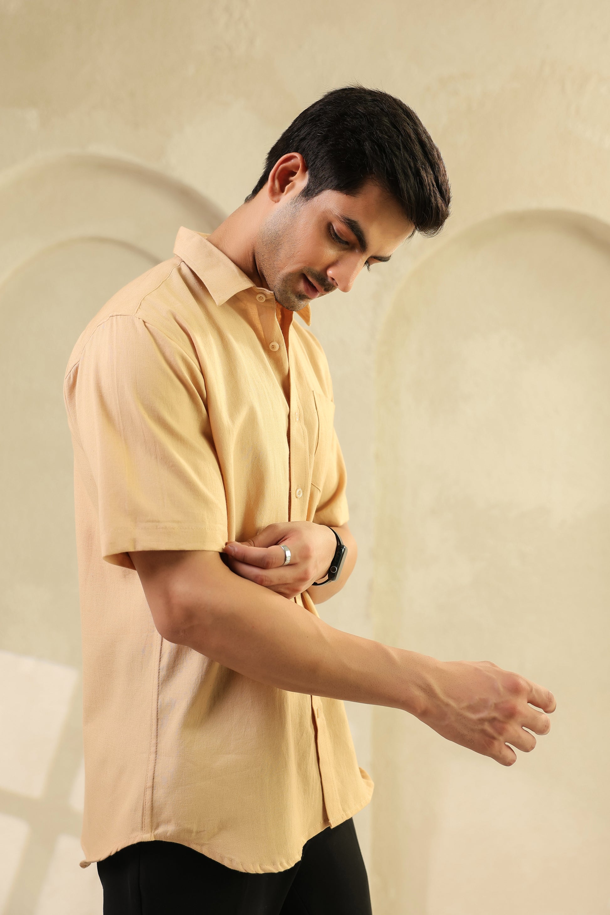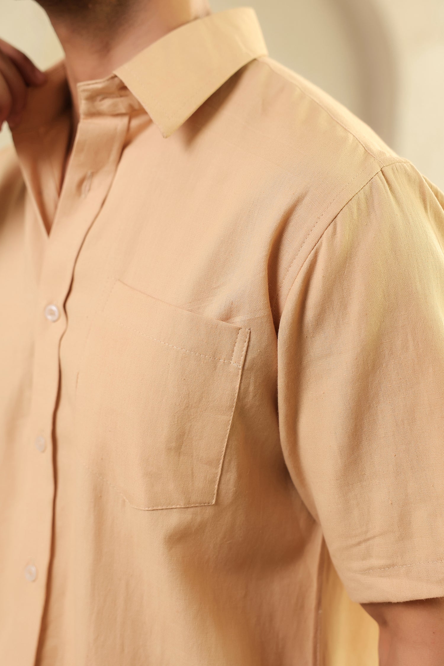 There’s a certain stillness in beige, a calm that doesn’t try too hard. This shirt comes in a regular fit crafted from blended linen that feels airy on the skin. The handstitched finish adds a quiet, human touch, personal and familiar. Built for every kind of weather, it’s for men who value subtlety and strength in equal measure.