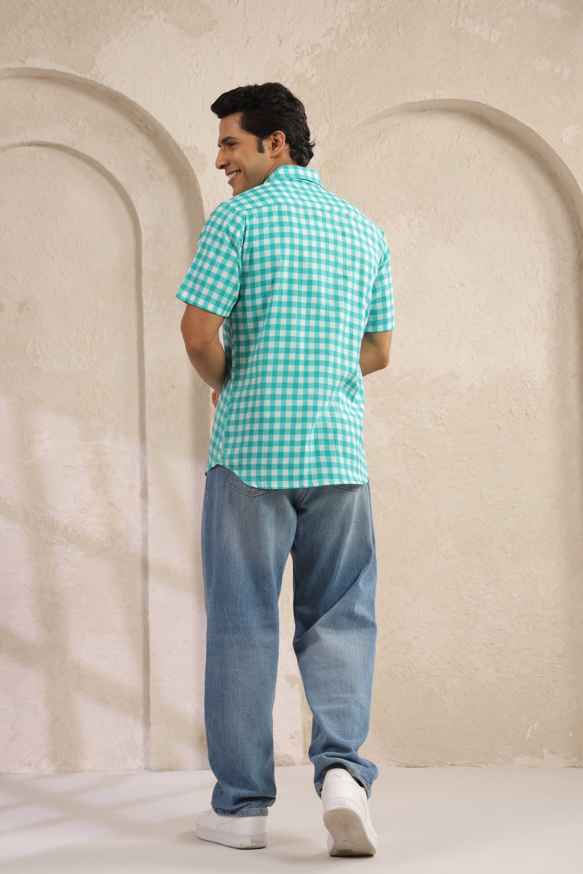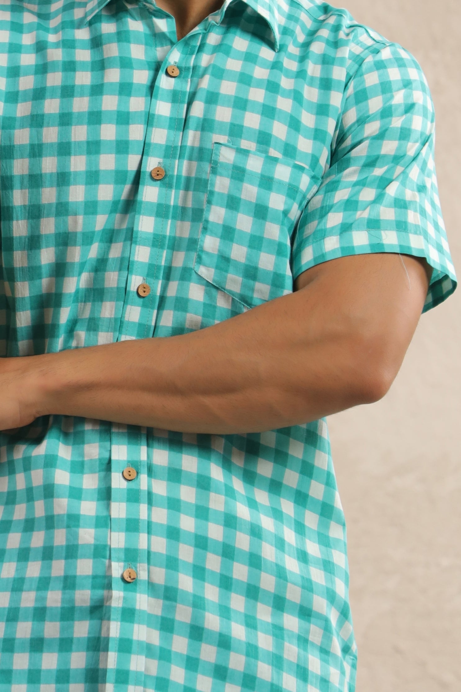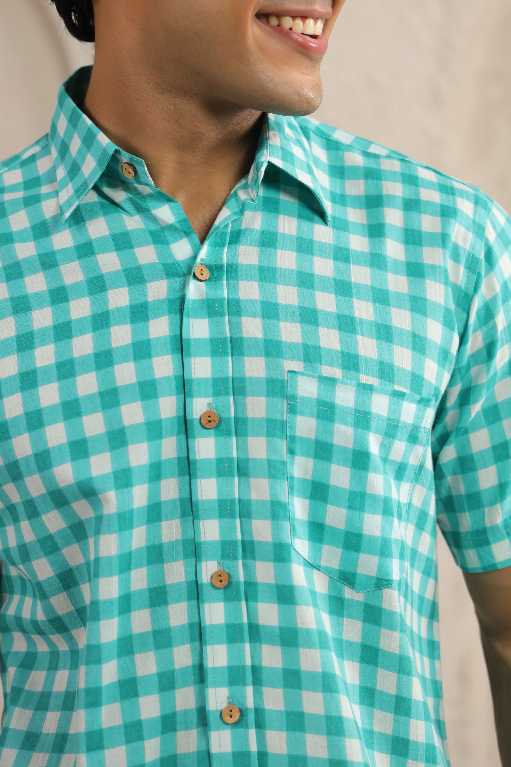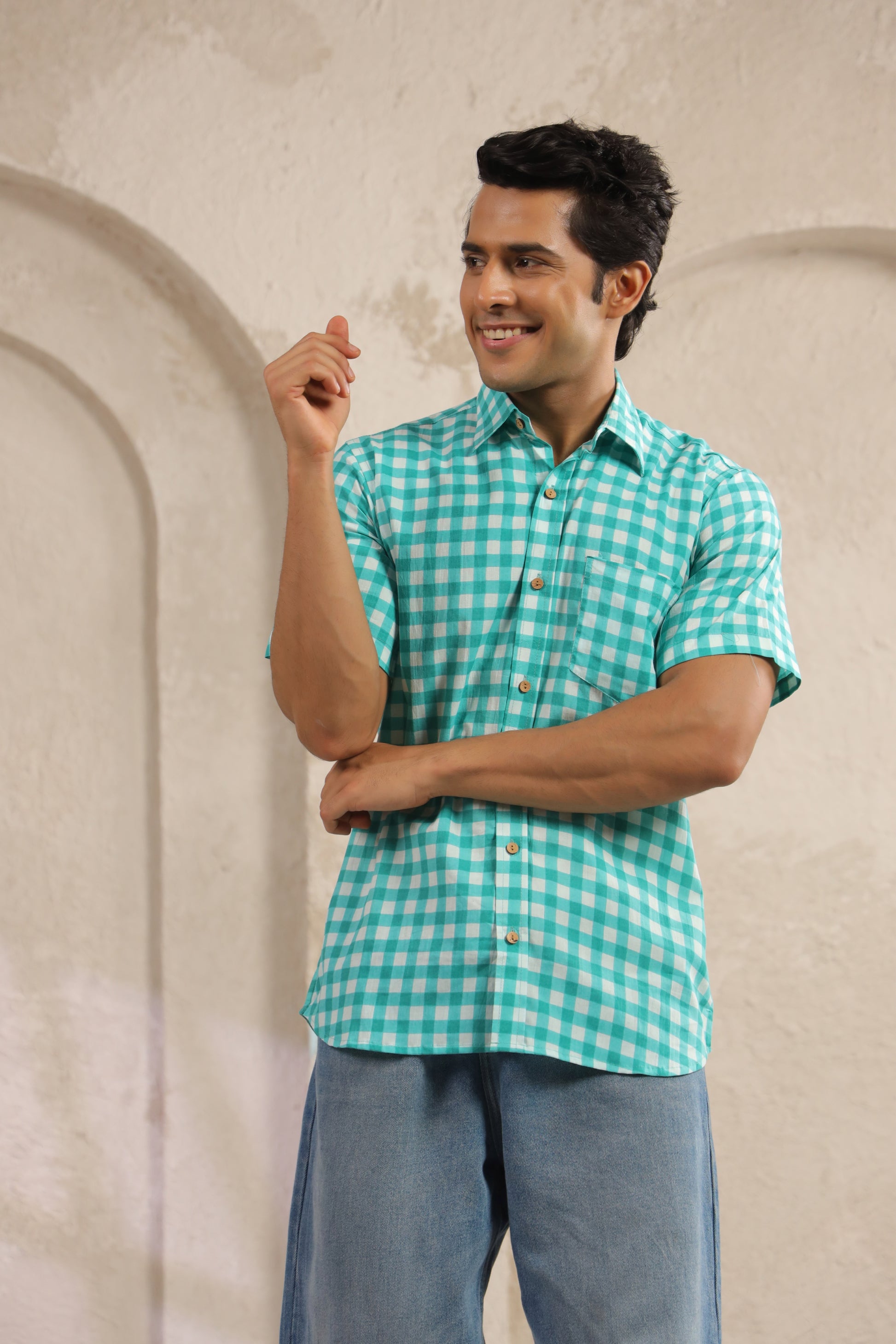 This screen printed cotton shirt is made in checks pattern. This is hand stiched and made of 100% pure cotton. It is a regular fit shirt which can be combined with variety of bottoms.