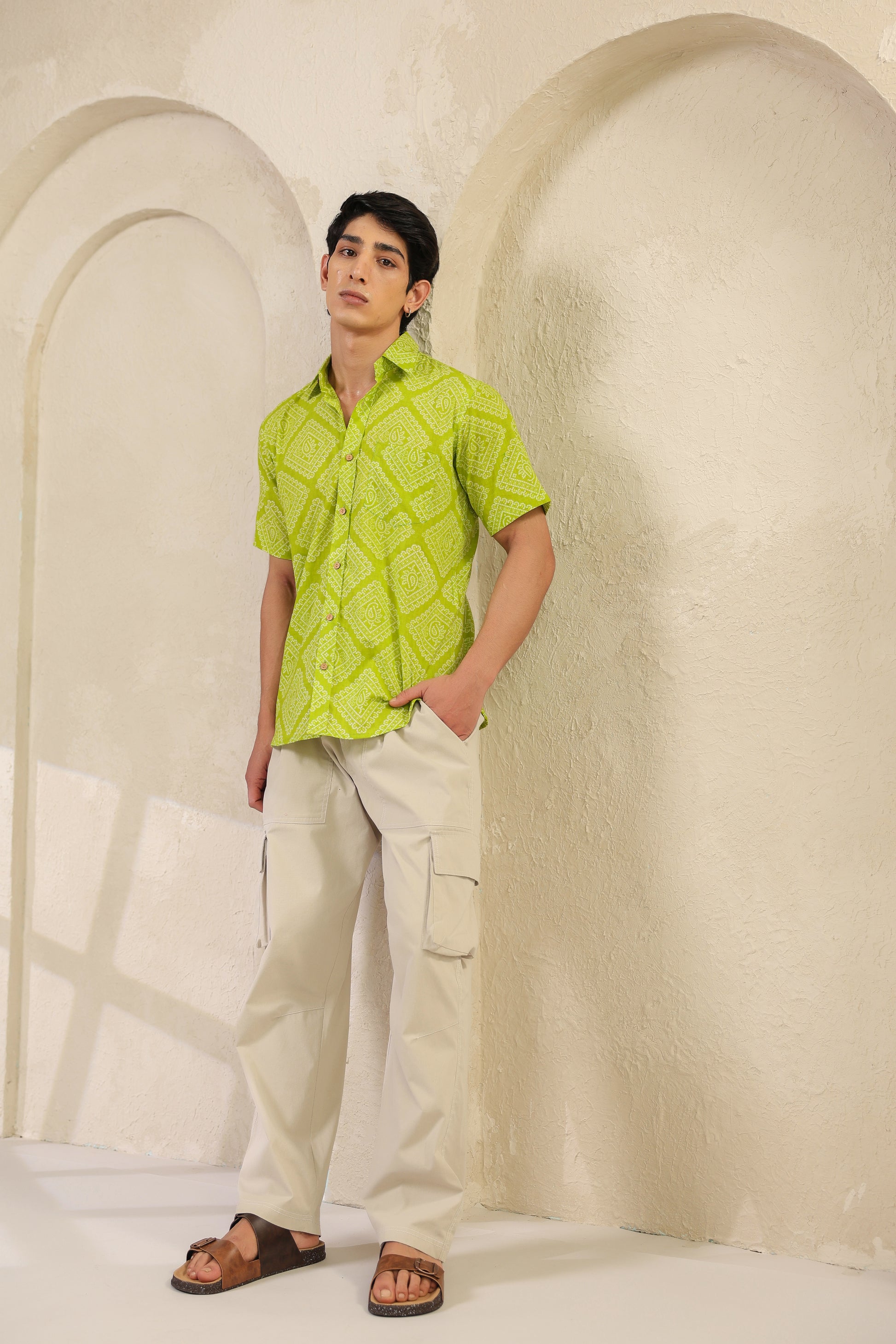 Lime regular fit cotton shirt