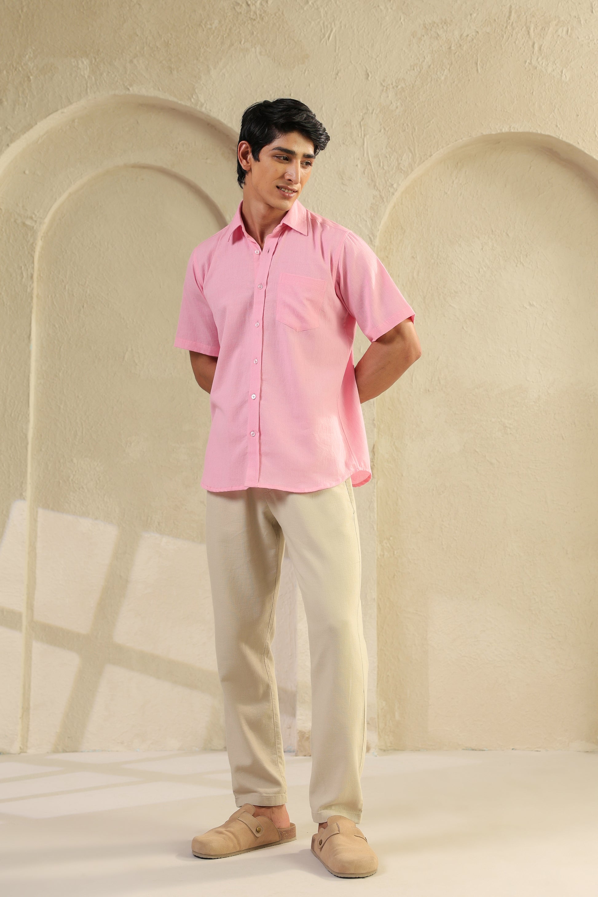 This regular fit shirt is made in blended linen fabric. This is hand stiched and perfect for any weather.