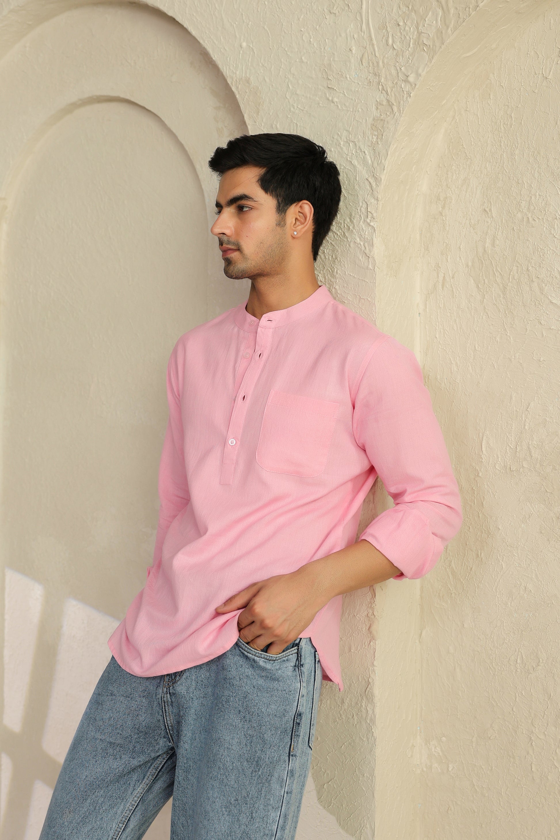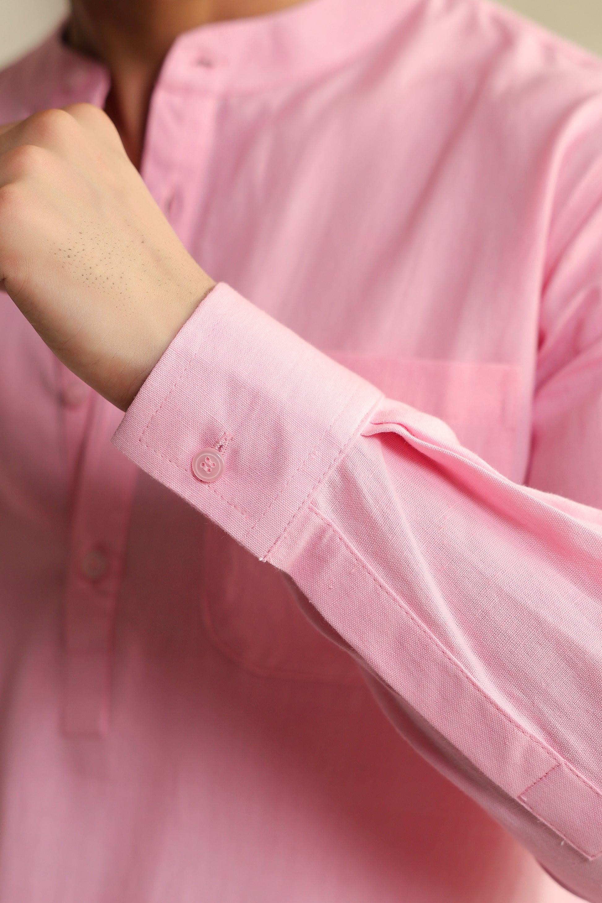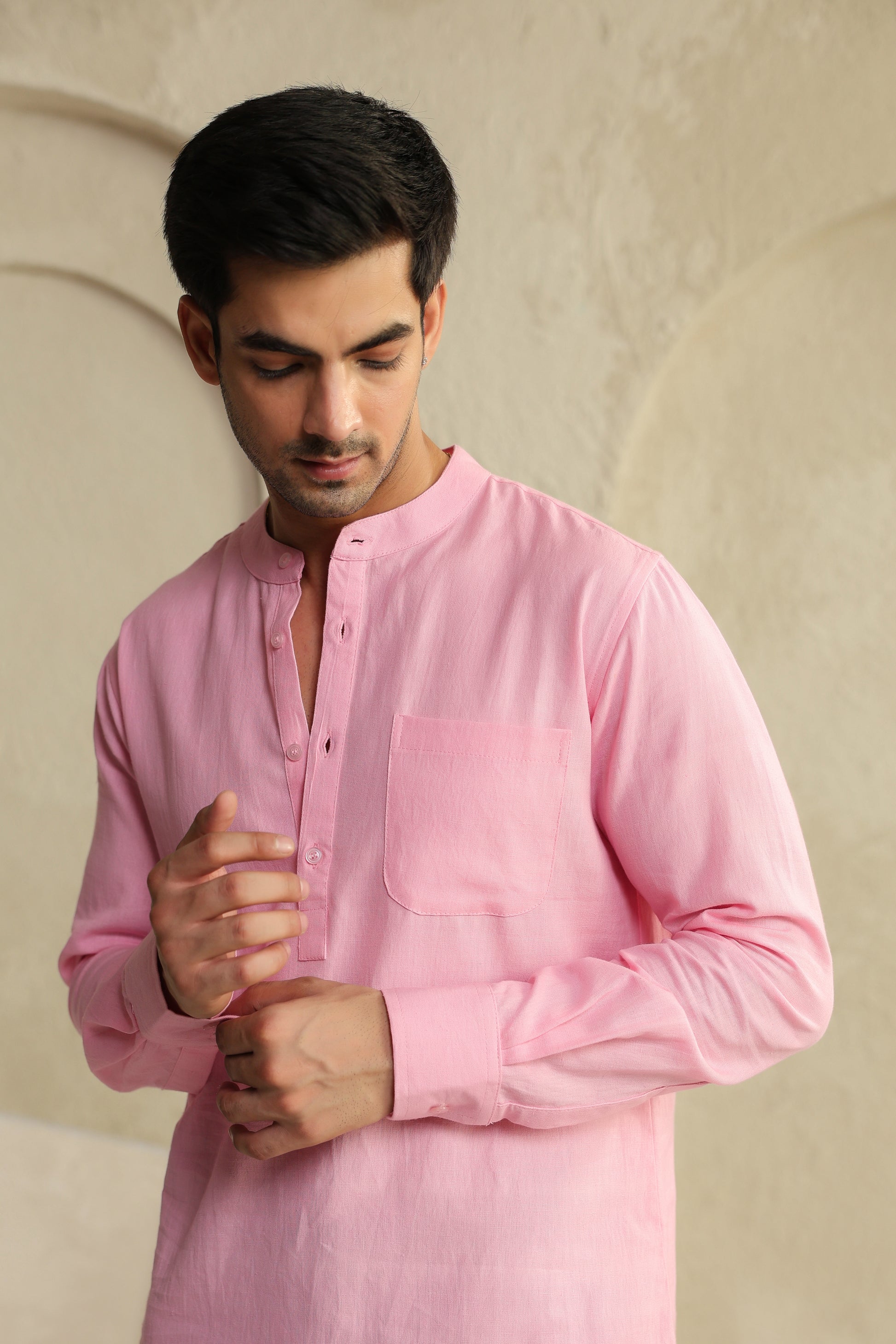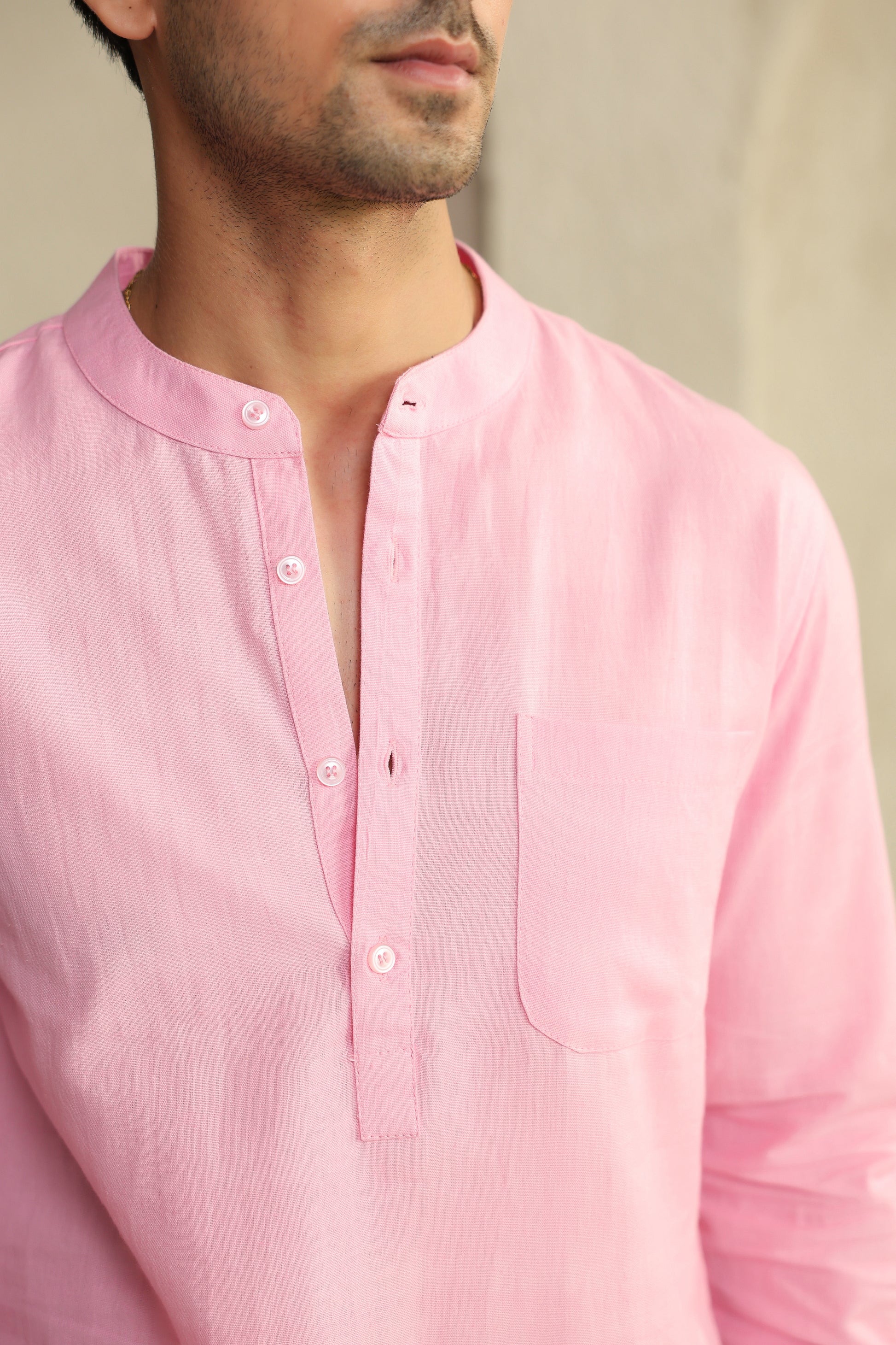The pink in this kurta feels like early morning light—gentle, open, and full of warmth. The linen blend breathes easy on the skin, while minimal tailoring keeps it grounded in quiet sophistication. Made for days that ask for ease without compromise.