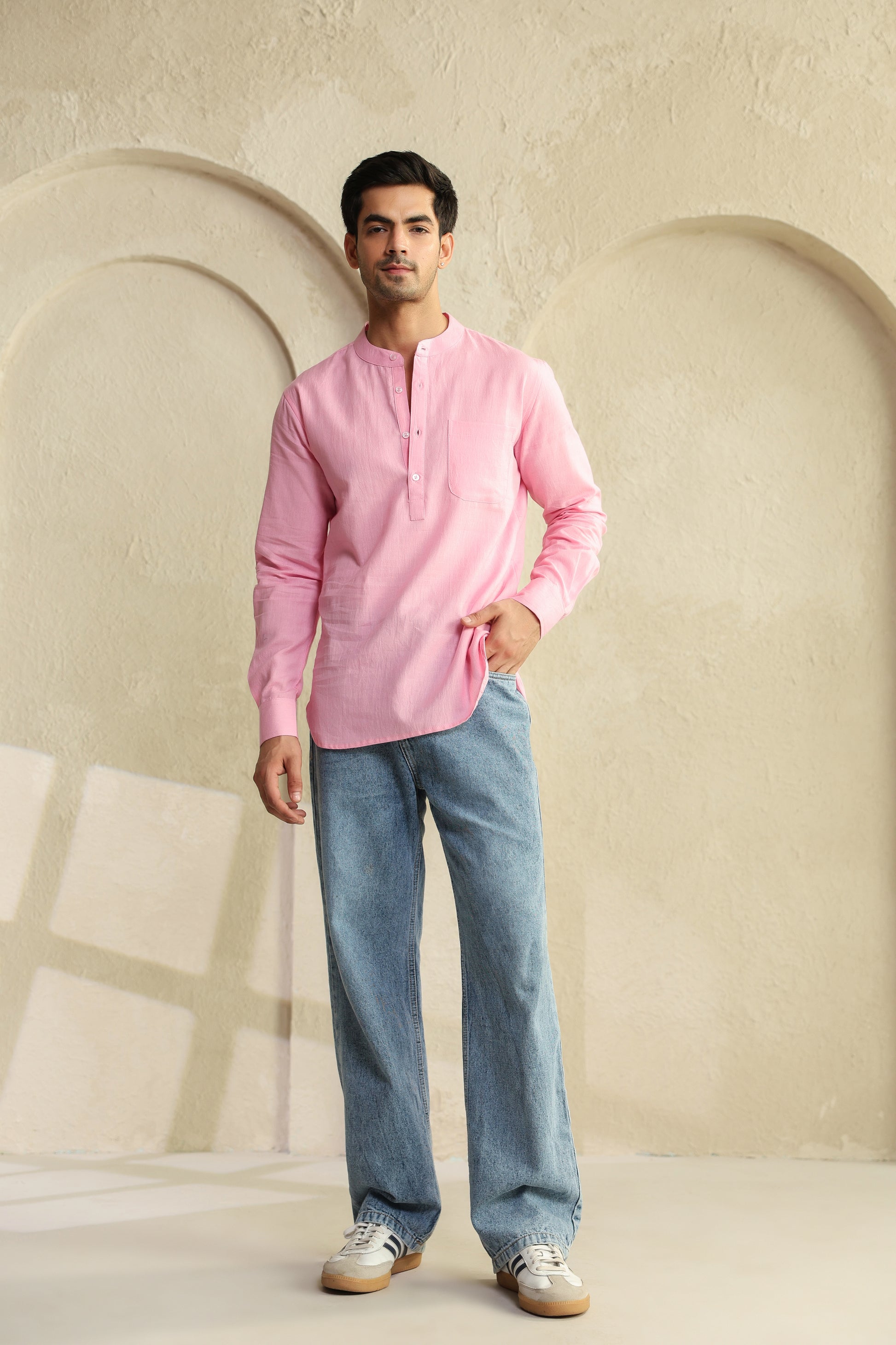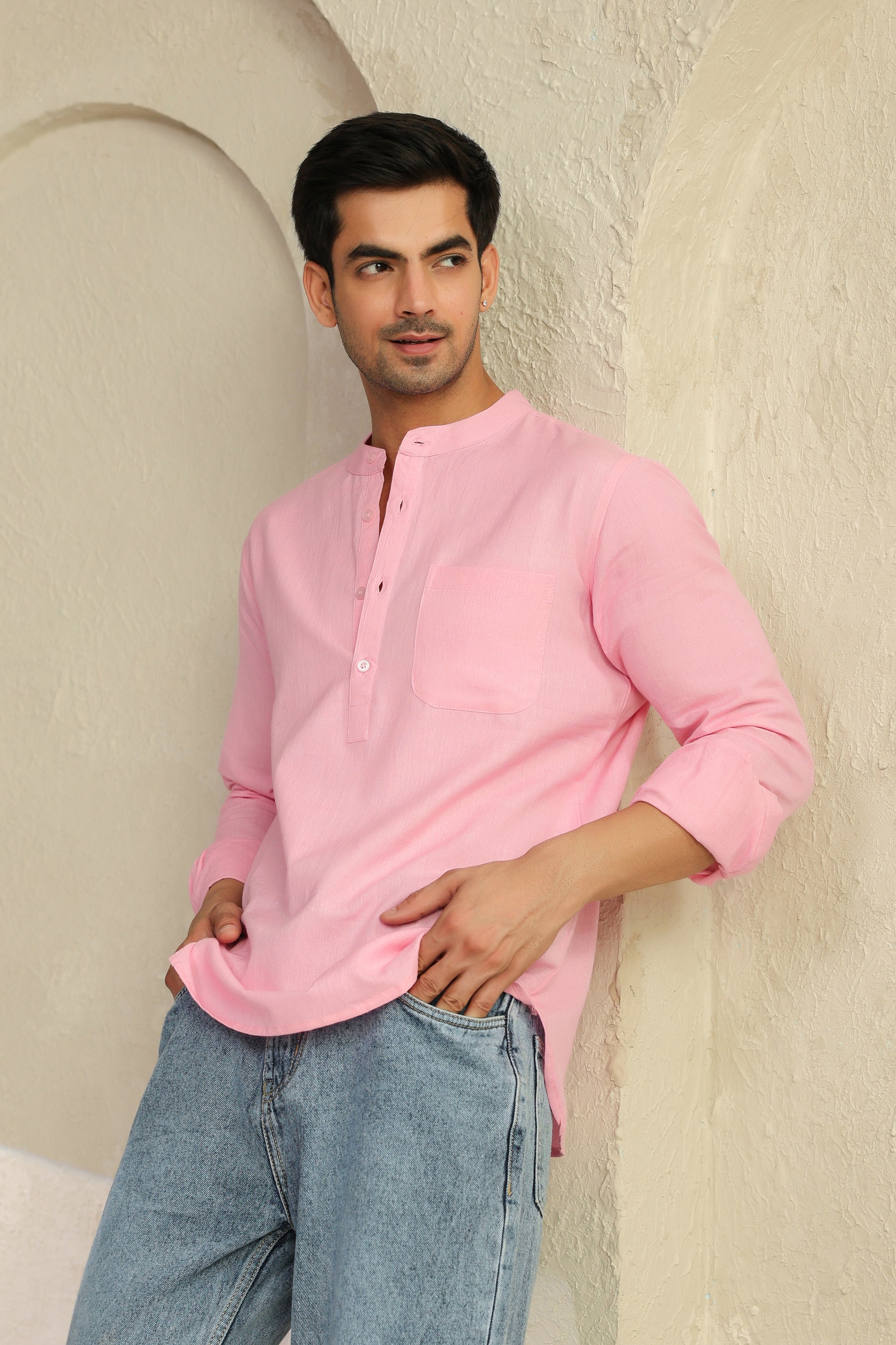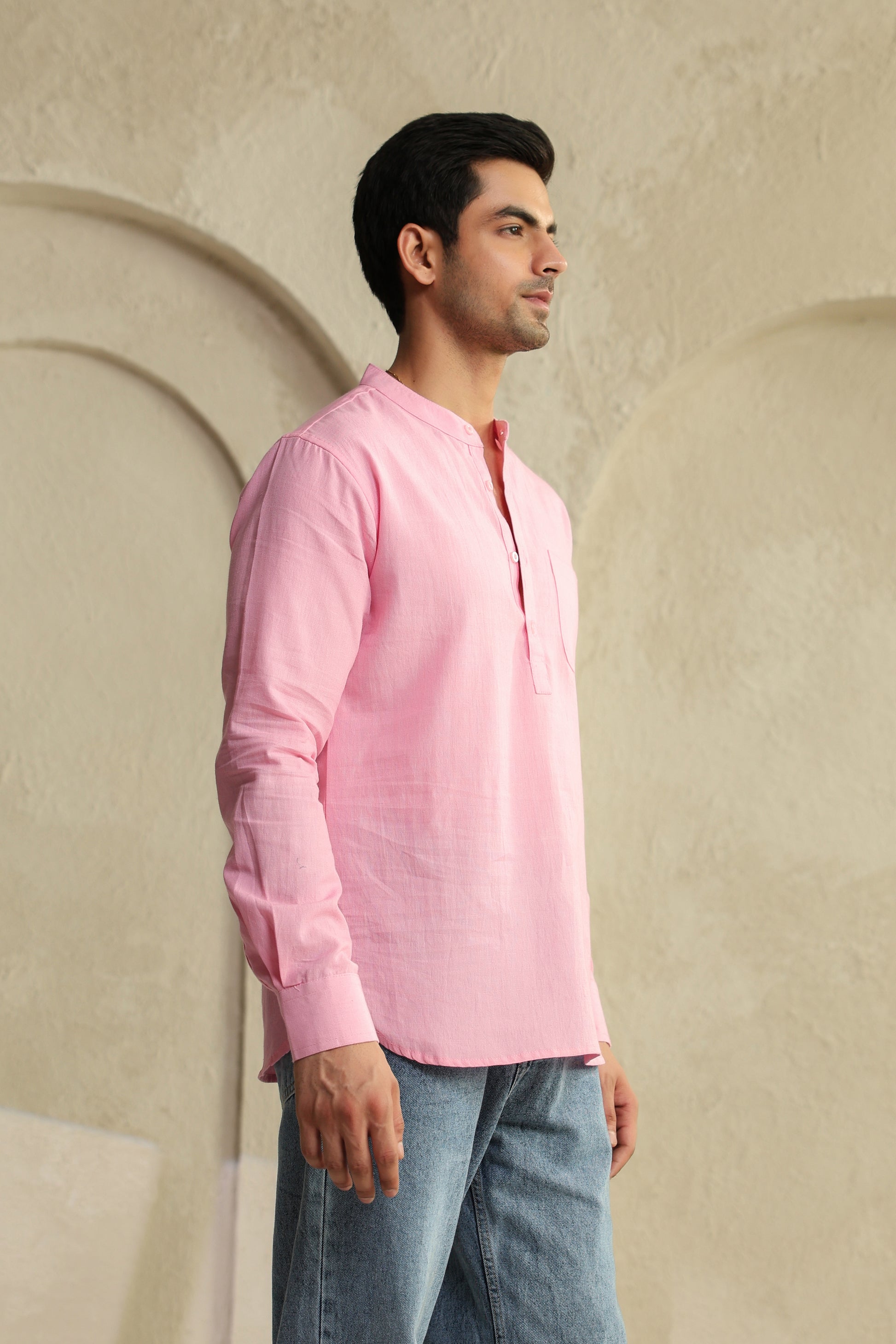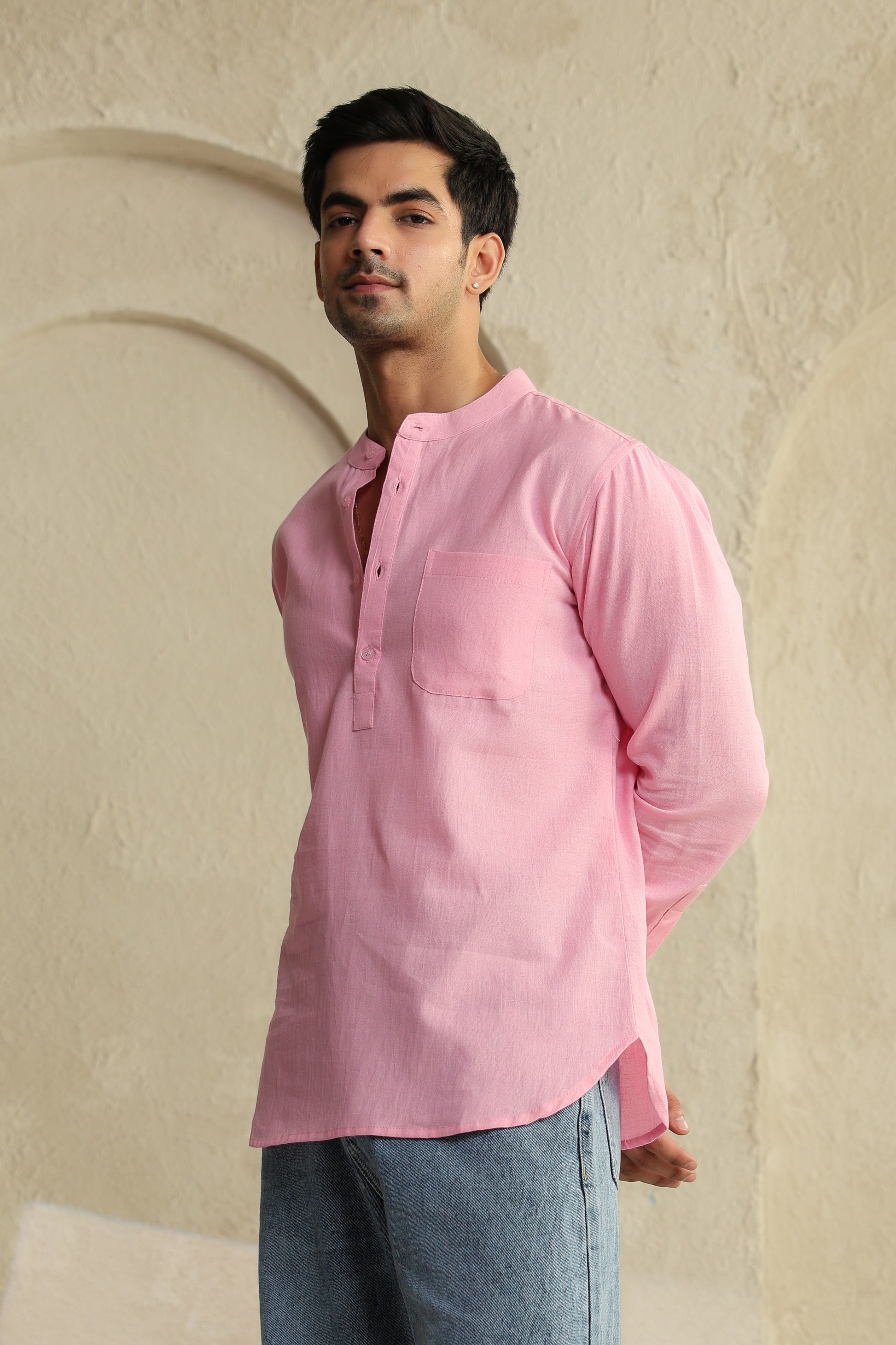The pink in this kurta feels like early morning light—gentle, open, and full of warmth. The linen blend breathes easy on the skin, while minimal tailoring keeps it grounded in quiet sophistication. Made for days that ask for ease without compromise.