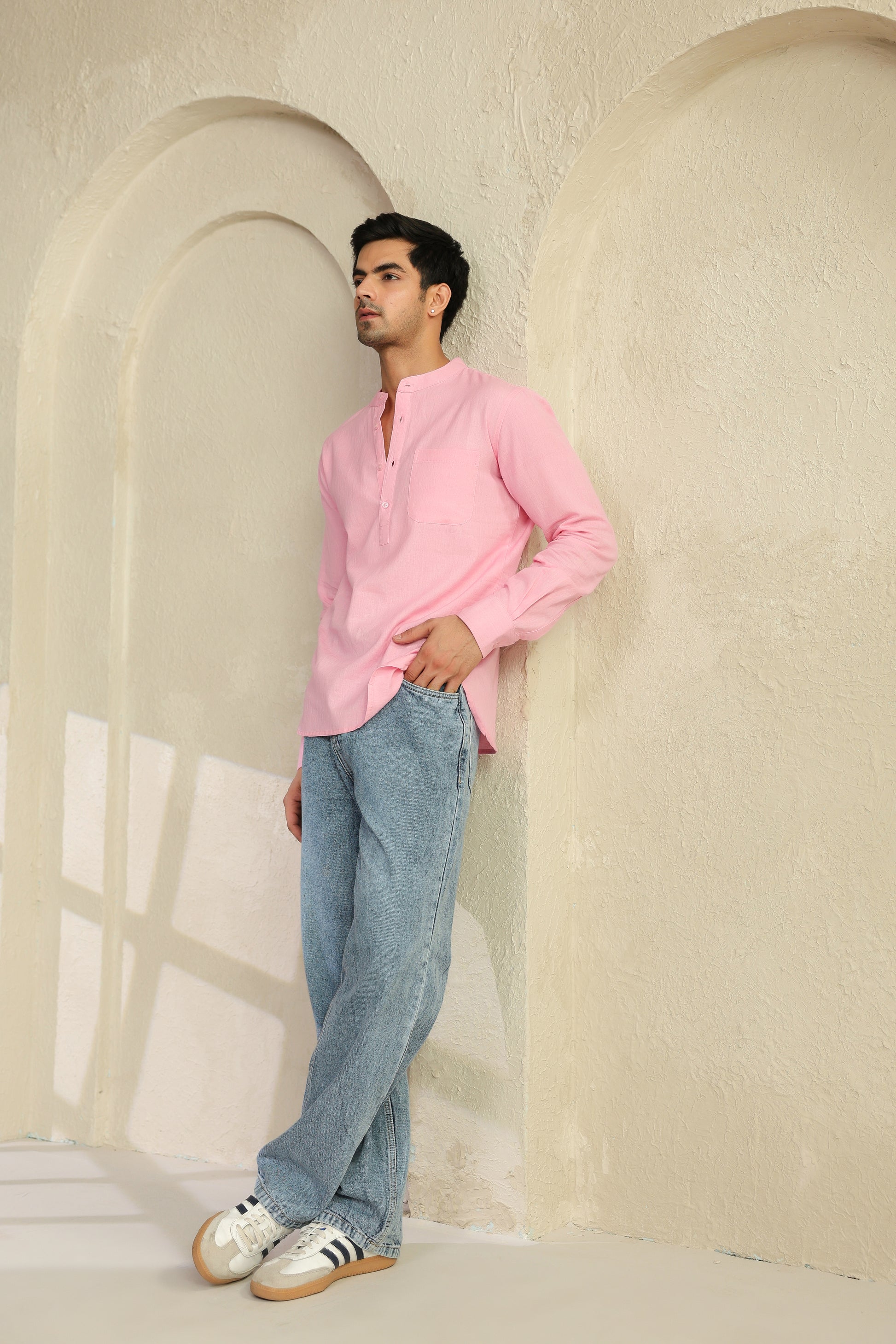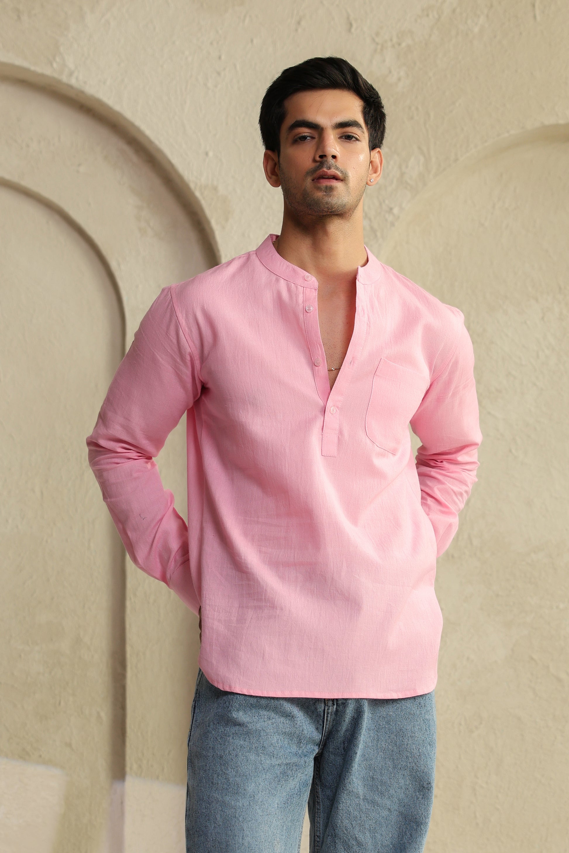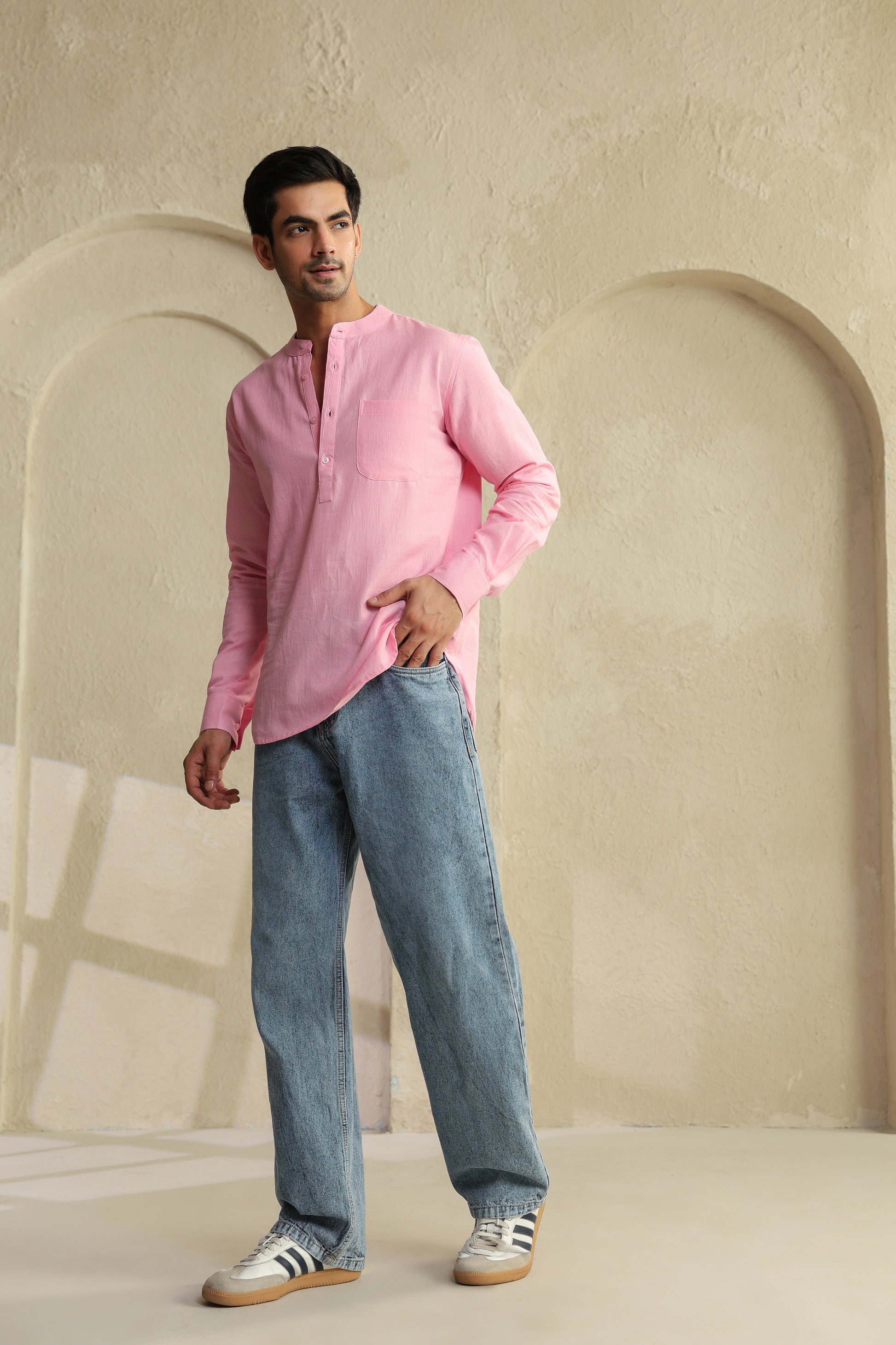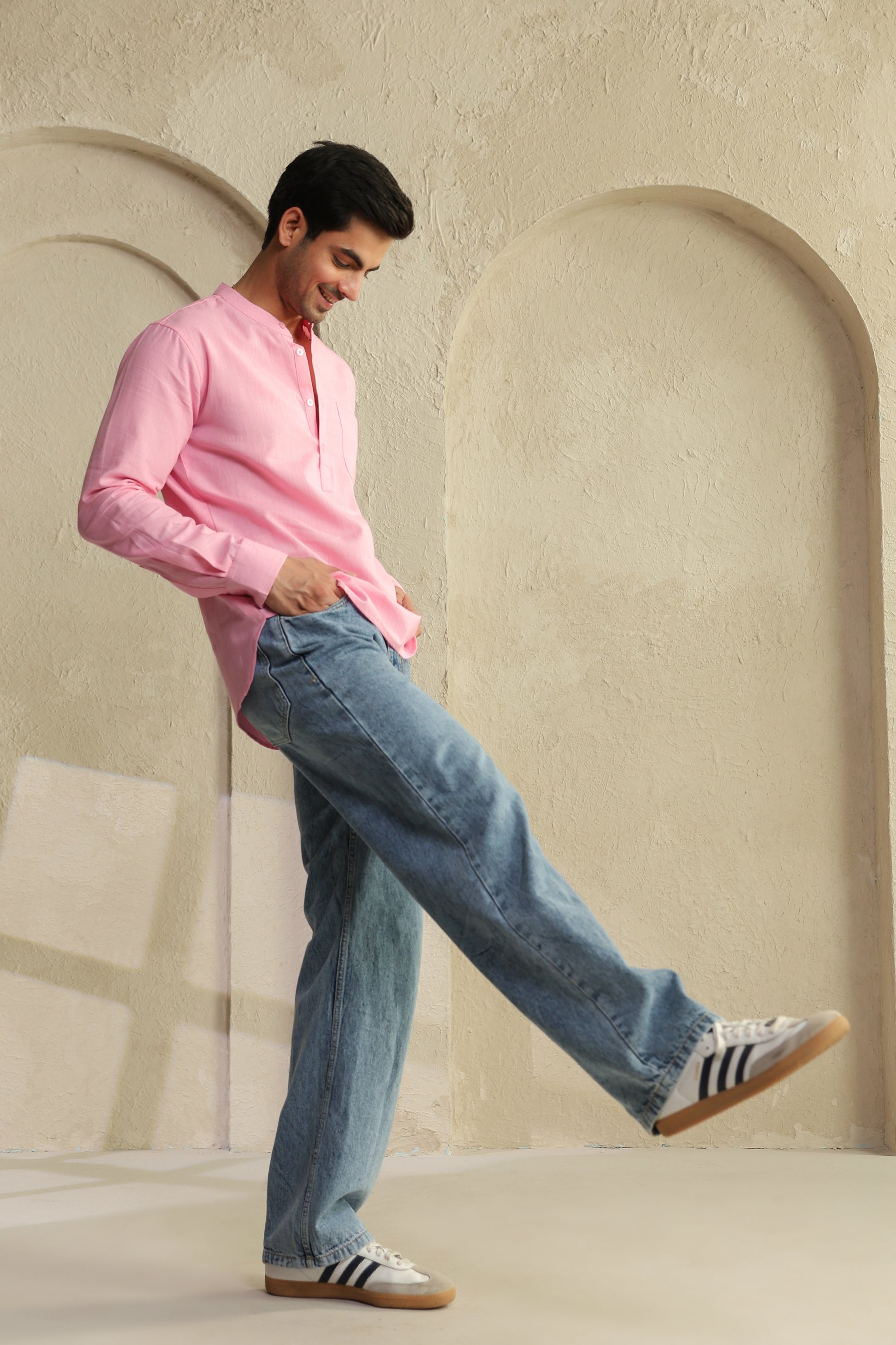 The pink in this kurta feels like early morning light—gentle, open, and full of warmth. The linen blend breathes easy on the skin, while minimal tailoring keeps it grounded in quiet sophistication. Made for days that ask for ease without compromise.