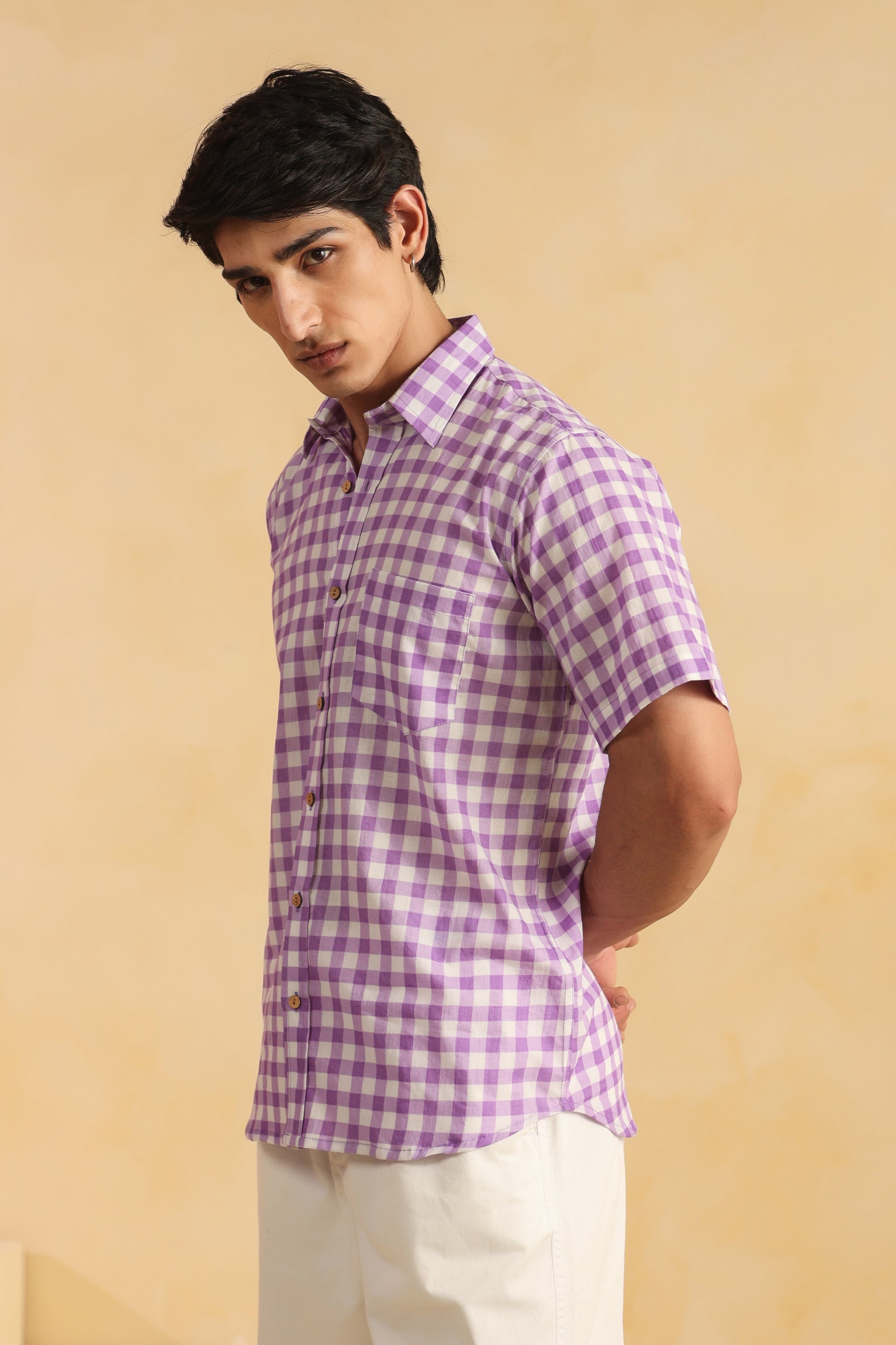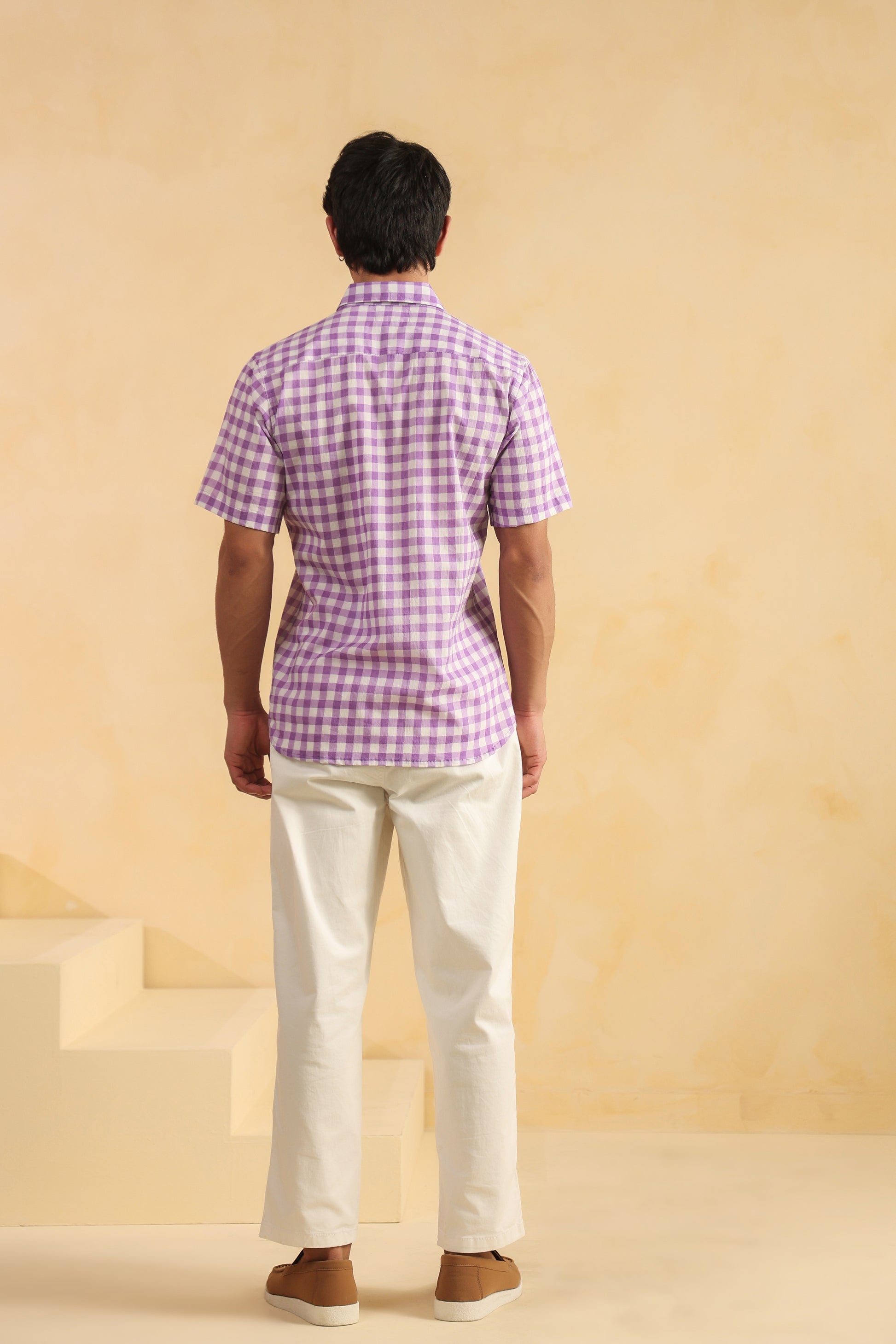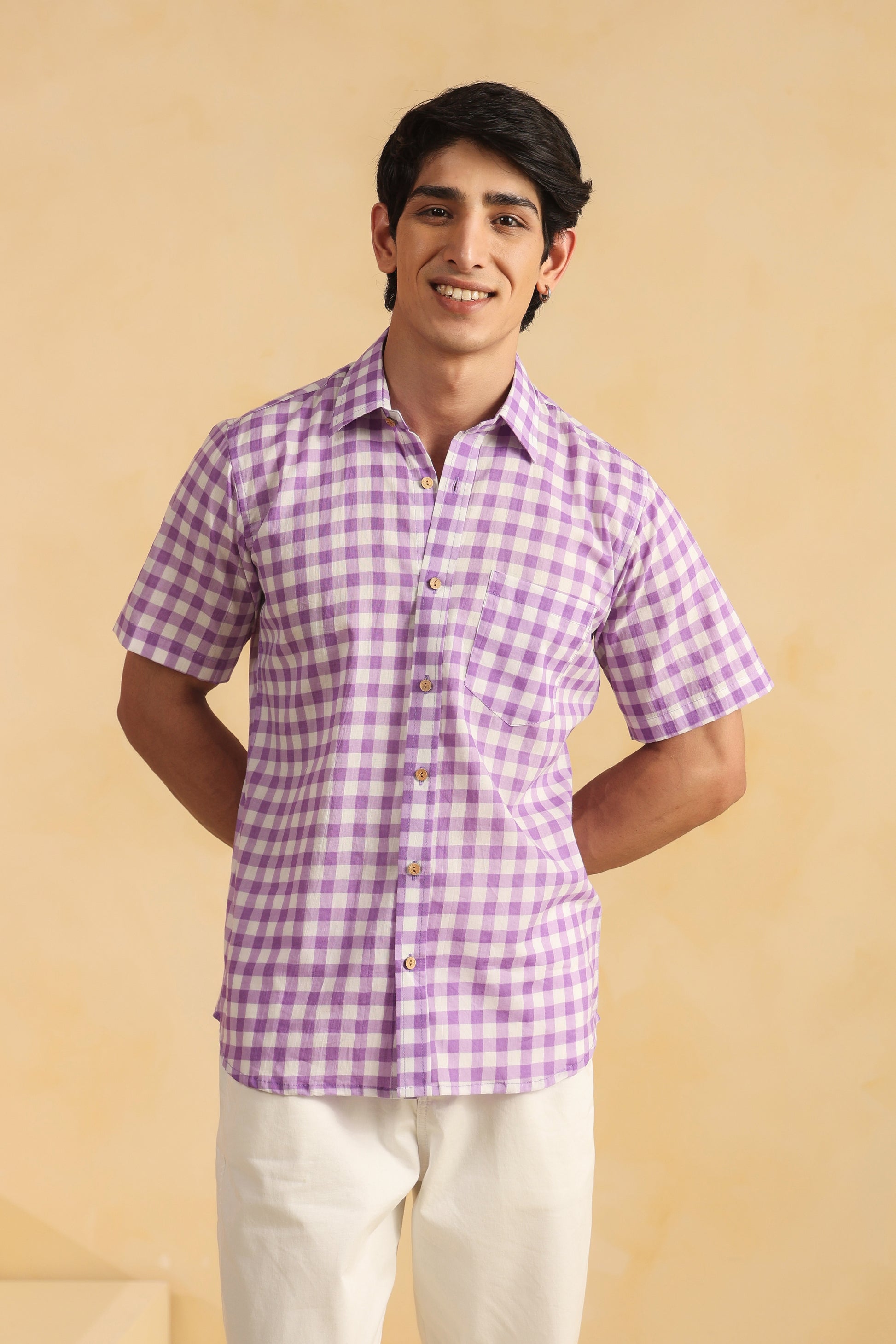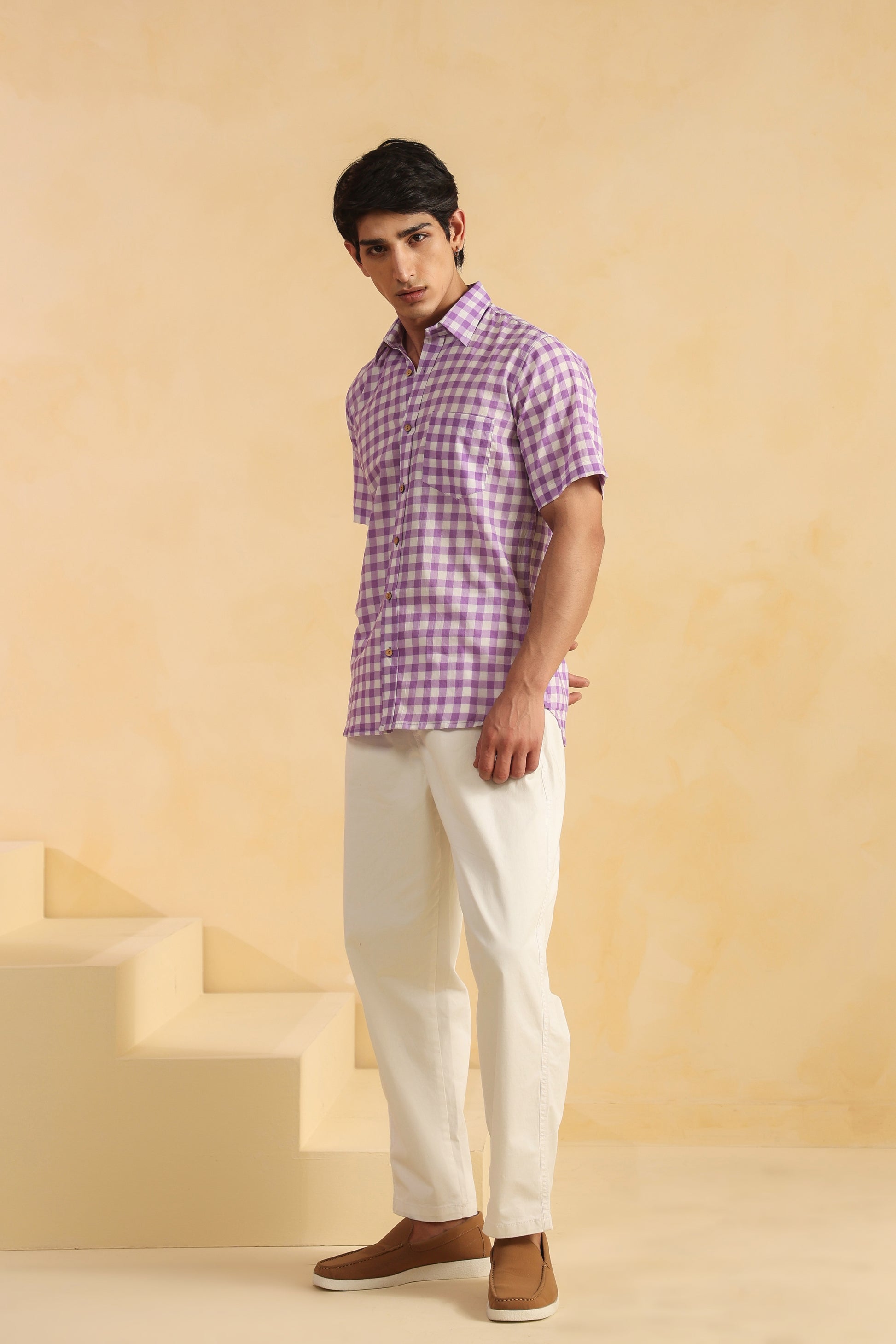 The soft lavender checks aren’t just a pattern. They carry a kind of ease that feels both fresh and familiar. Inspired by classic gingham but softened for today, the shirt has a calm rhythm when you look closely. Each line, each square, sits in quiet balance. Made from pure cotton, stitched by hand, it feels light and breathable — like a second skin on warm days. Just like the man who chooses to wear it, it doesn’t try too hard. It just feels right.