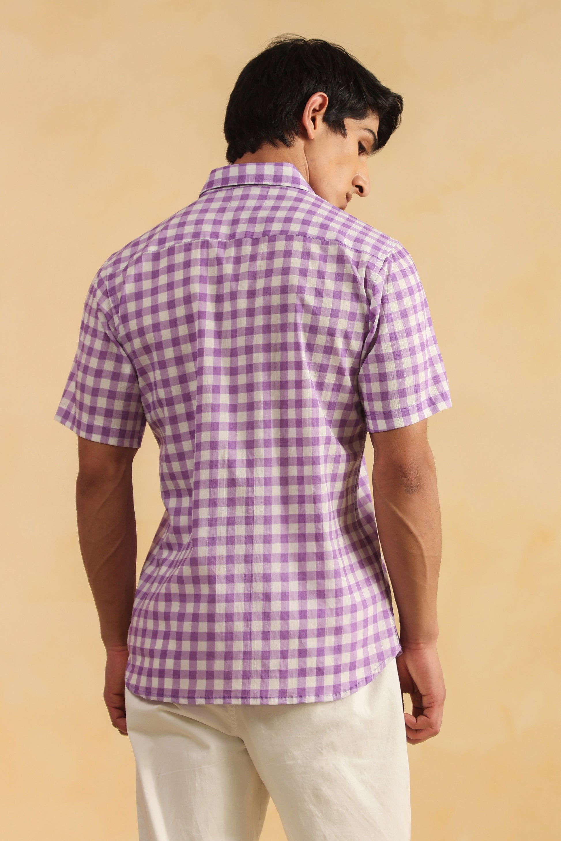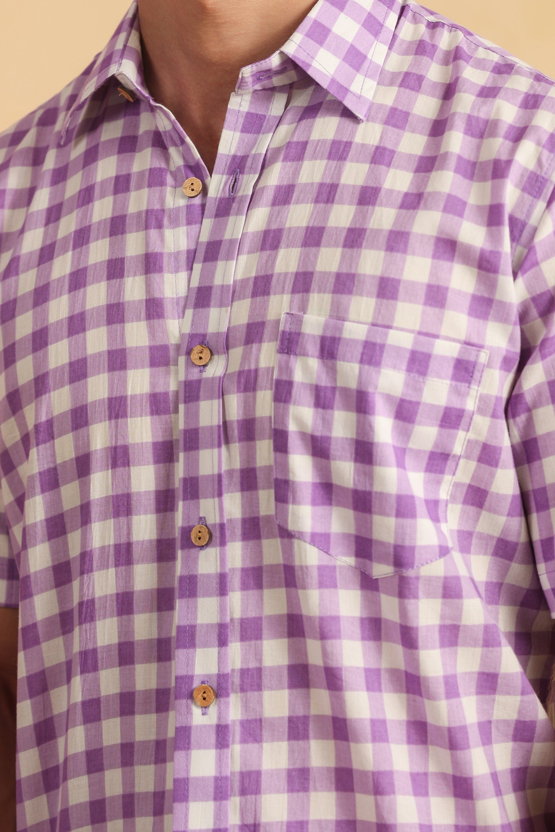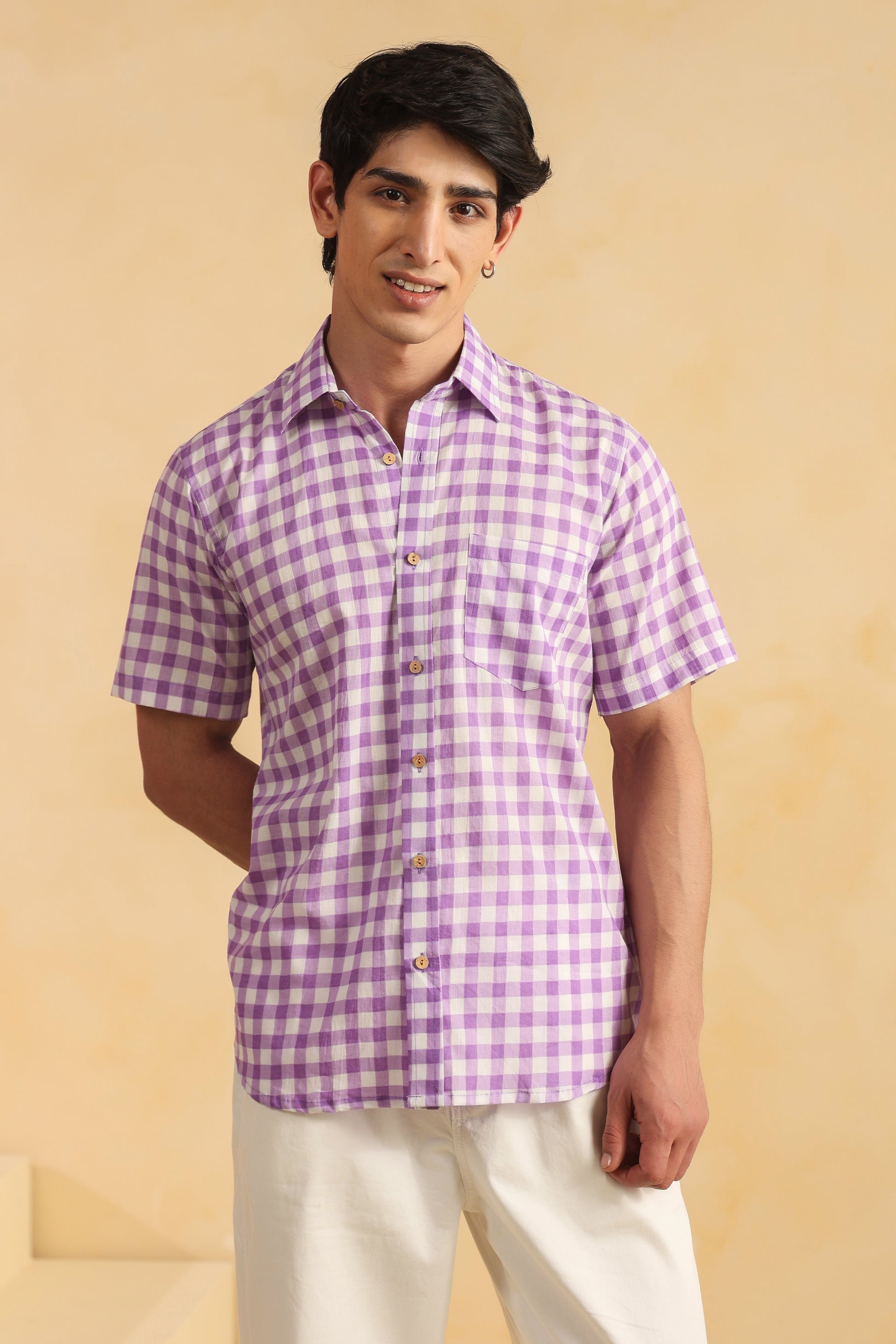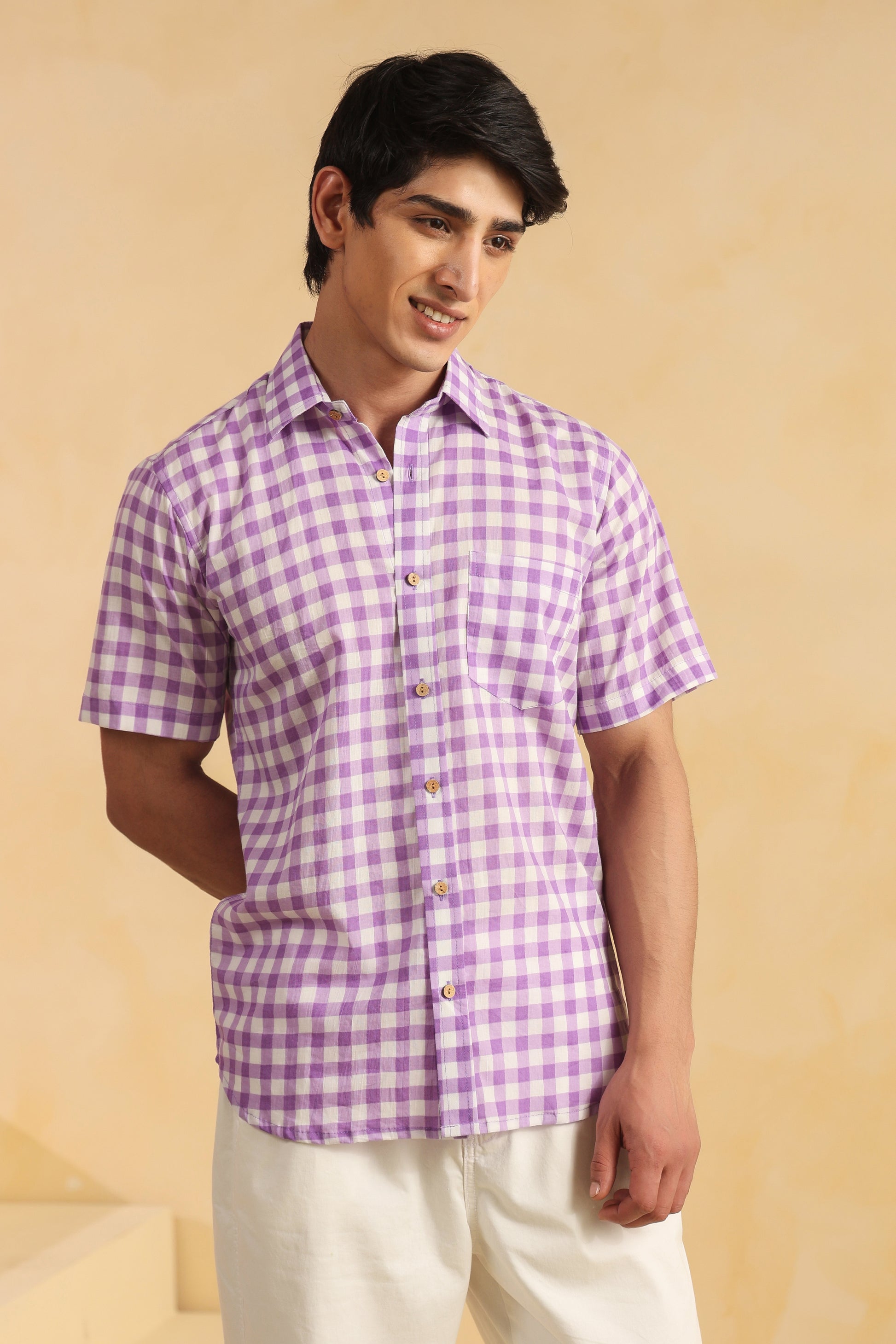 The soft lavender checks aren’t just a pattern. They carry a kind of ease that feels both fresh and familiar. Inspired by classic gingham but softened for today, the shirt has a calm rhythm when you look closely. Each line, each square, sits in quiet balance. Made from pure cotton, stitched by hand, it feels light and breathable — like a second skin on warm days. Just like the man who chooses to wear it, it doesn’t try too hard. It just feels right.