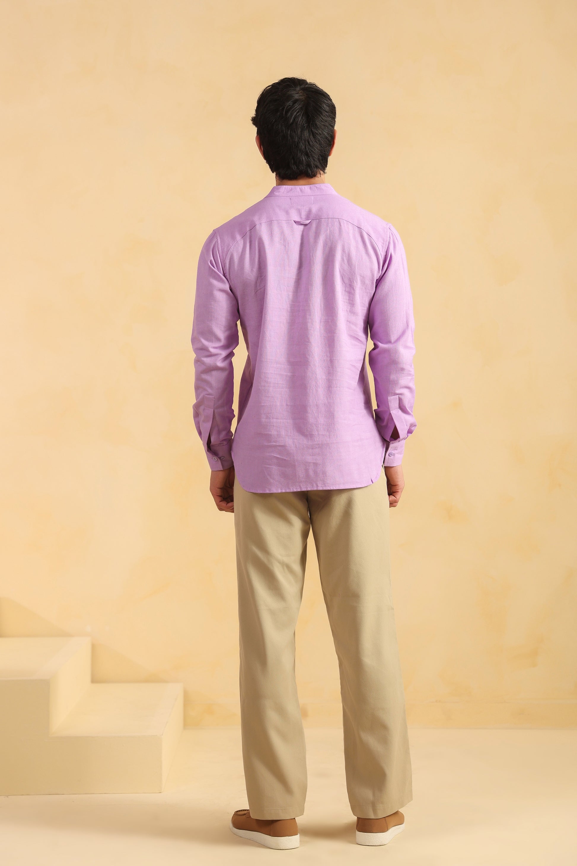 This regular fit shirt kurta is made in blended linen fabric. This is hand stiched and perfect for any weather.