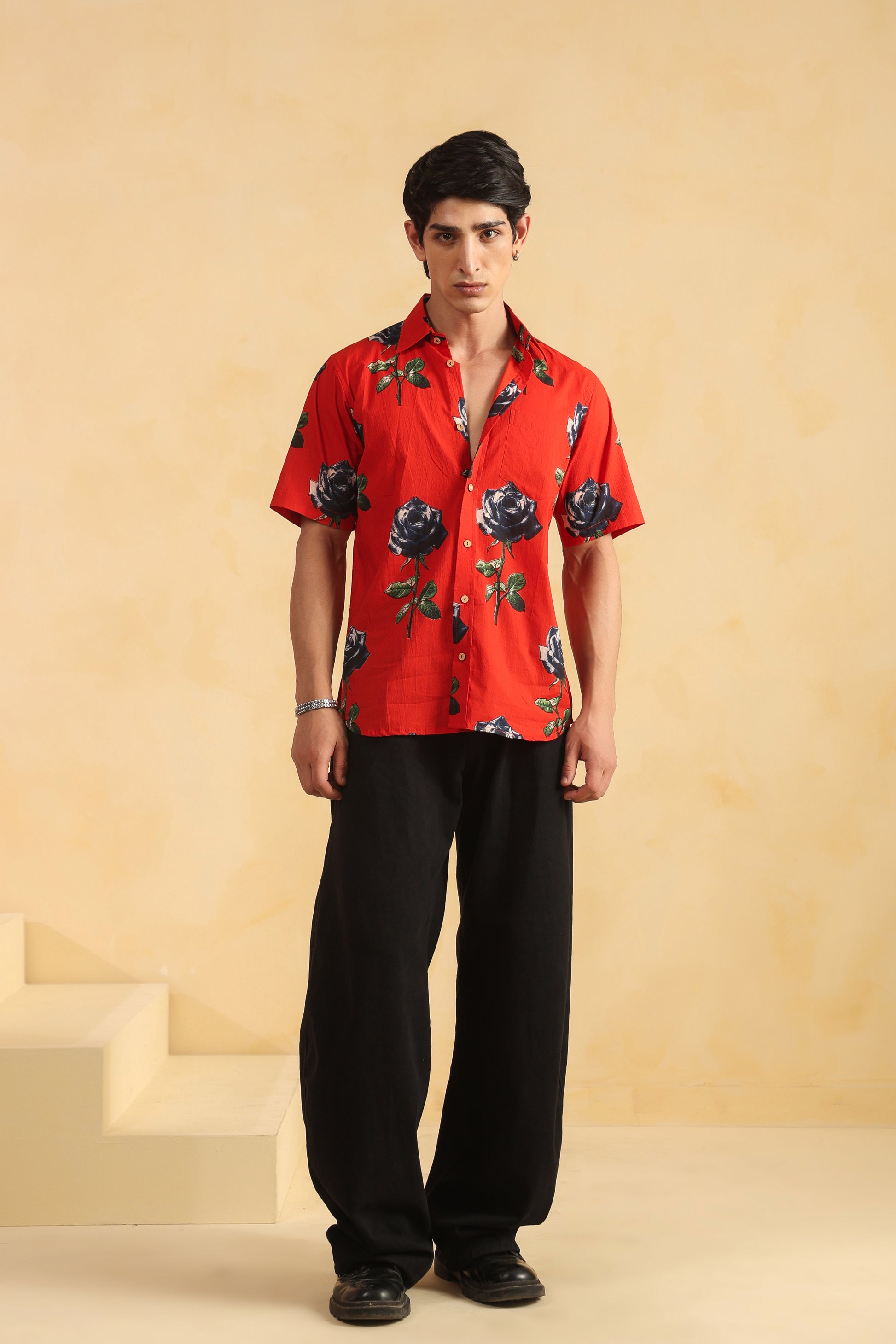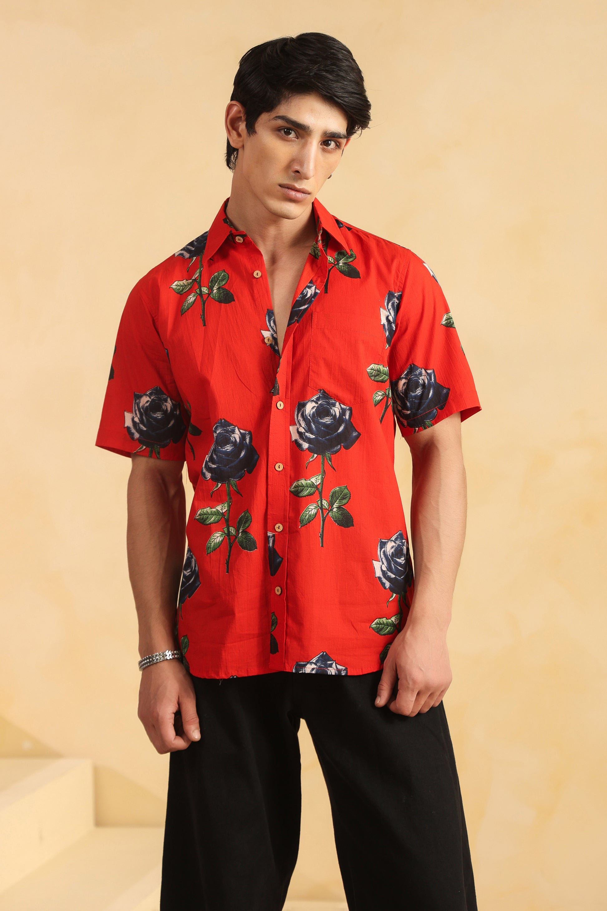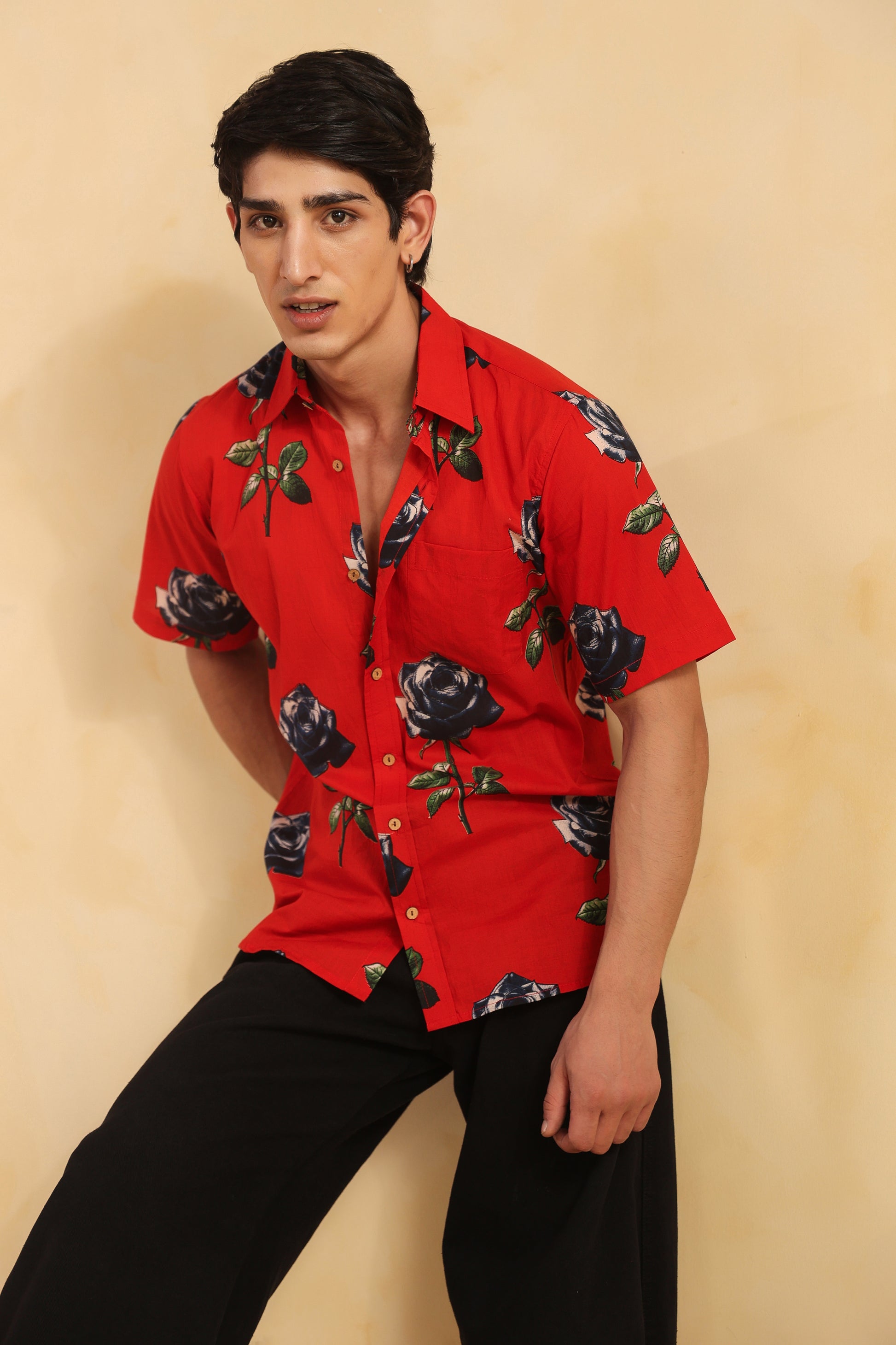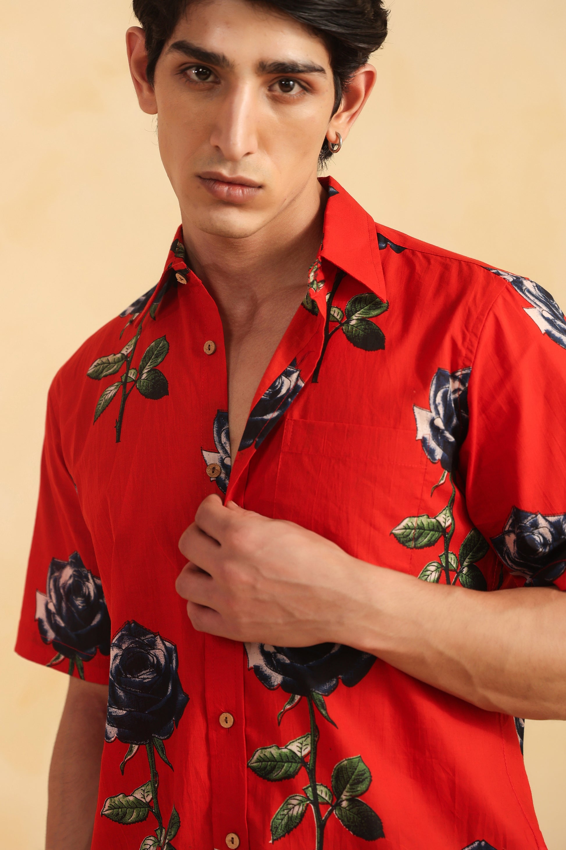 The rich red isn’t just a colour. It holds the energy of summer and the pulse of something alive. The florals are bold but thoughtful, blooming across the fabric with quiet intent. Made from pure cotton and hand stitched with care, the shirt feels light yet rooted. There is clarity in the contrast, softness in the structure. Just like the man who chooses to wear it.
