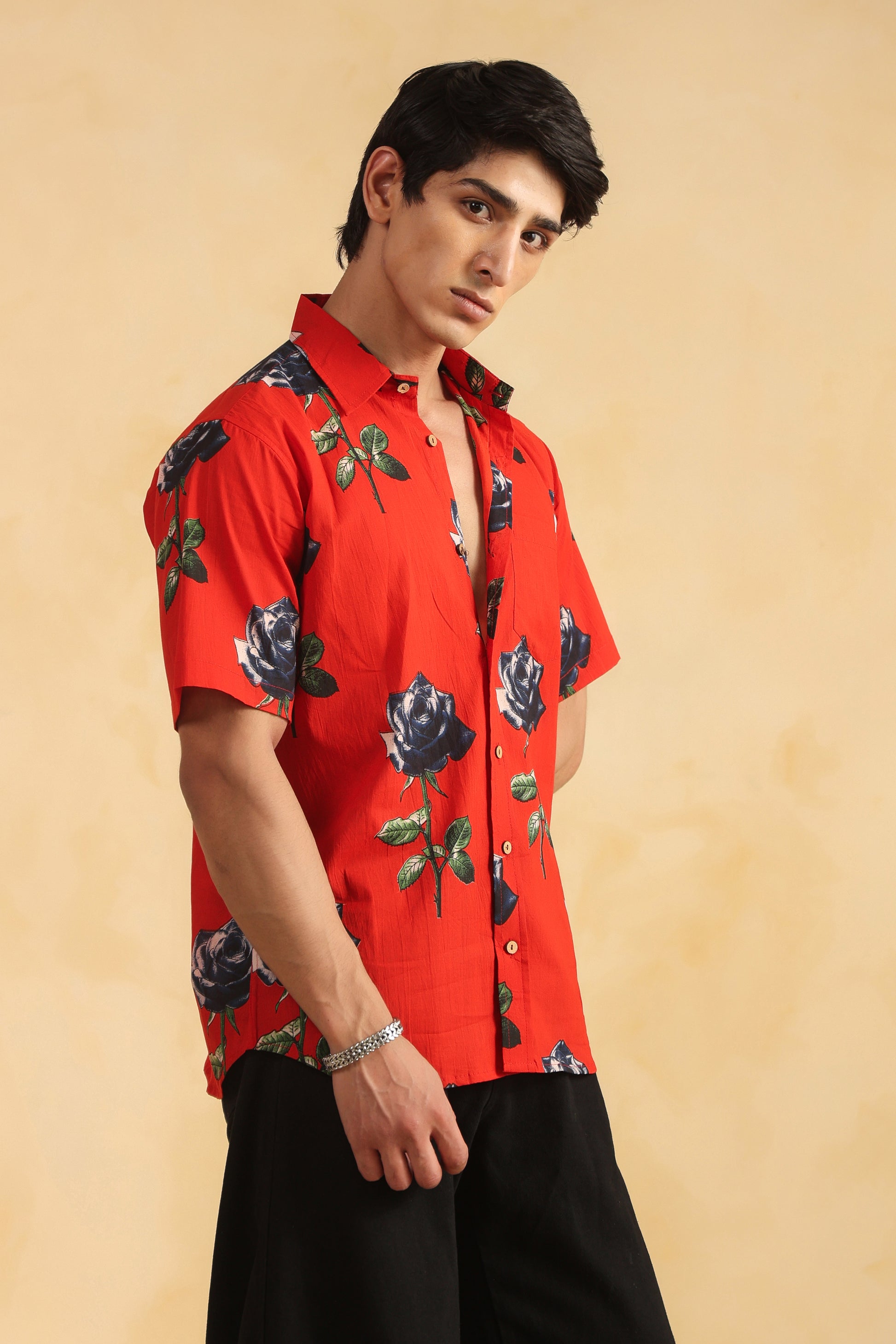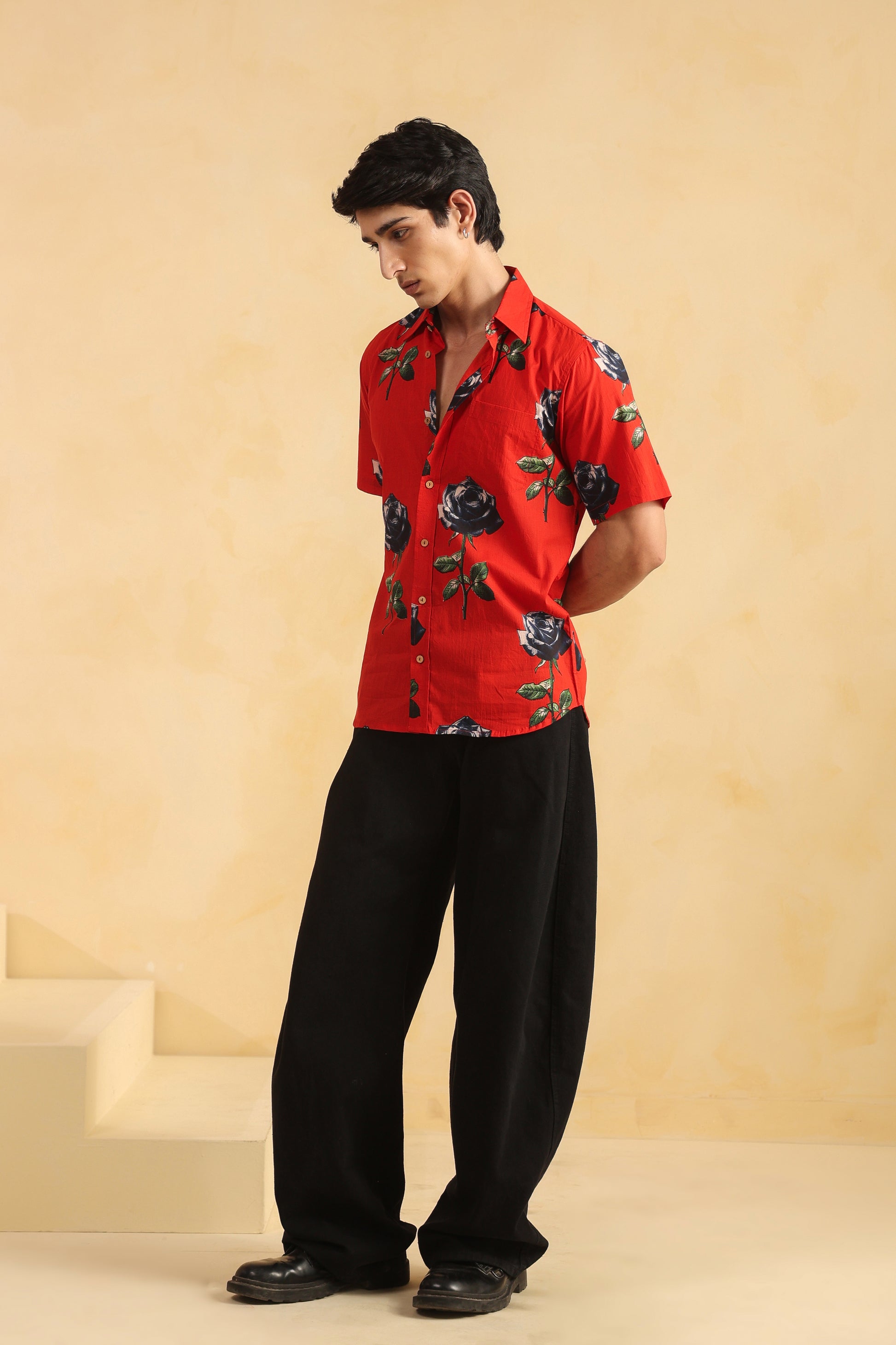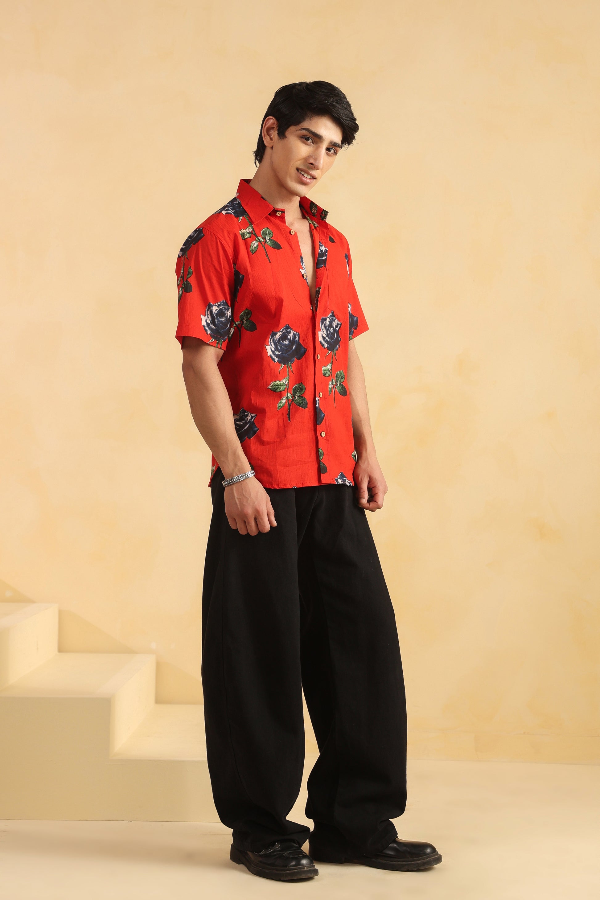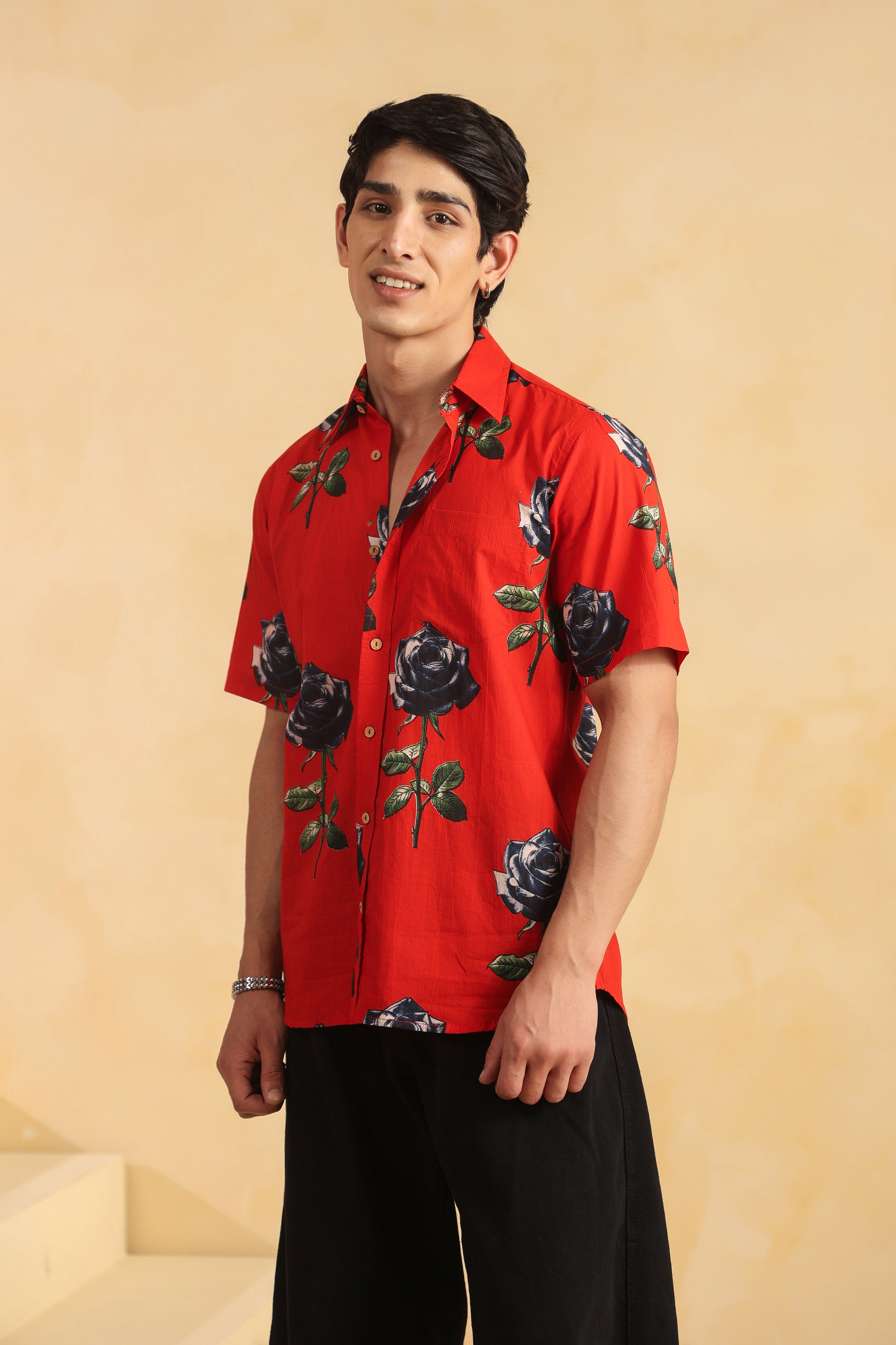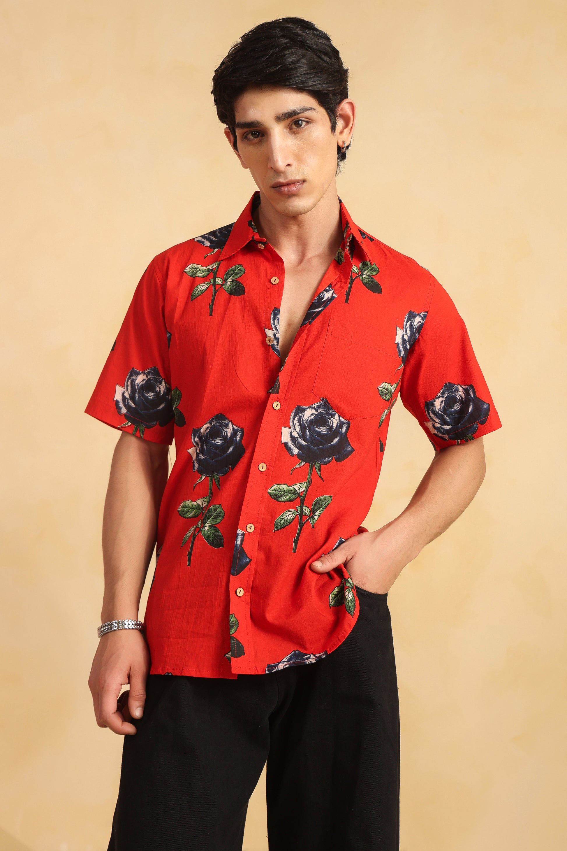 The rich red isn’t just a colour. It holds the energy of summer and the pulse of something alive. The florals are bold but thoughtful, blooming across the fabric with quiet intent. Made from pure cotton and hand stitched with care, the shirt feels light yet rooted. There is clarity in the contrast, softness in the structure. Just like the man who chooses to wear it.