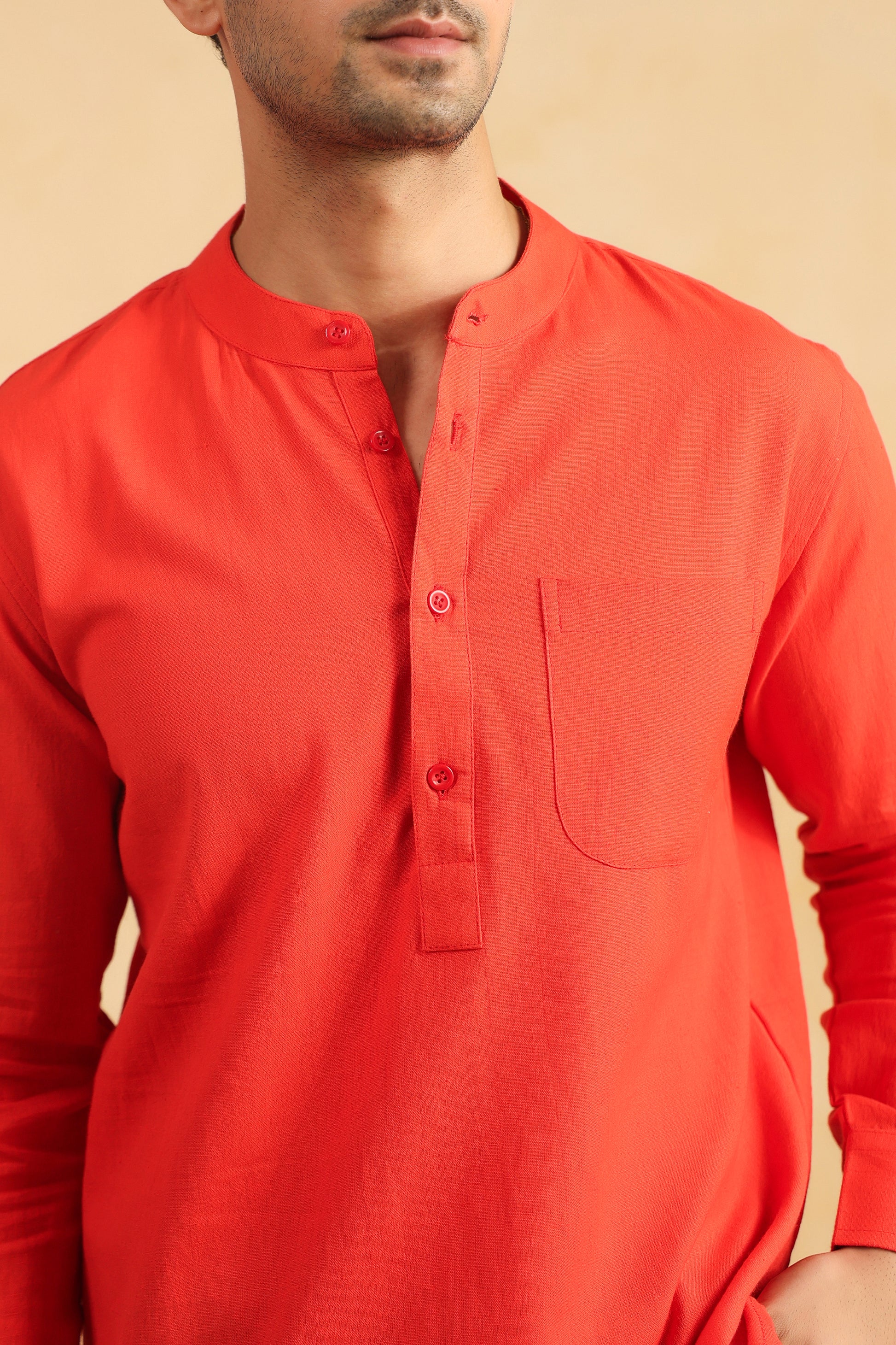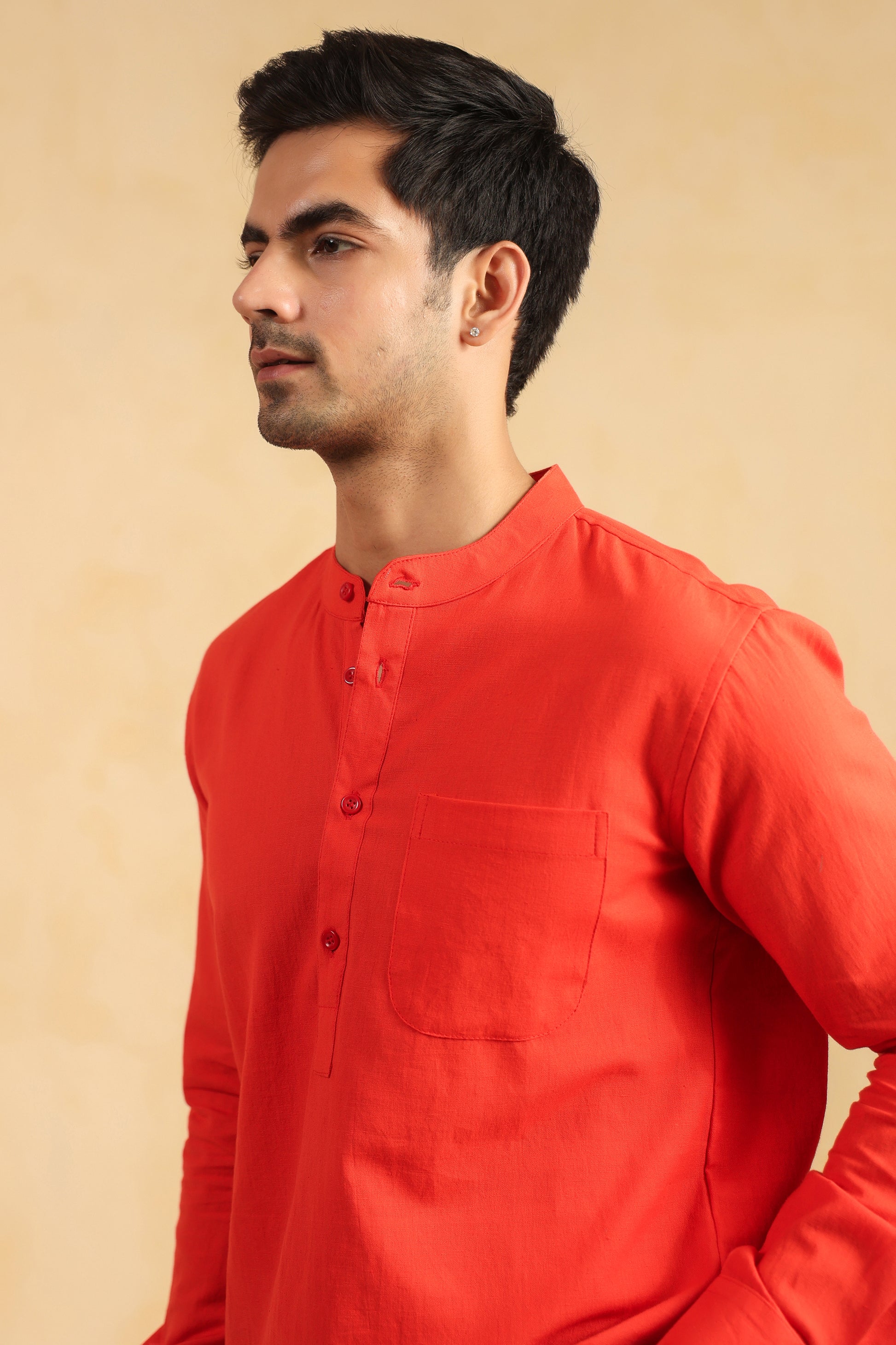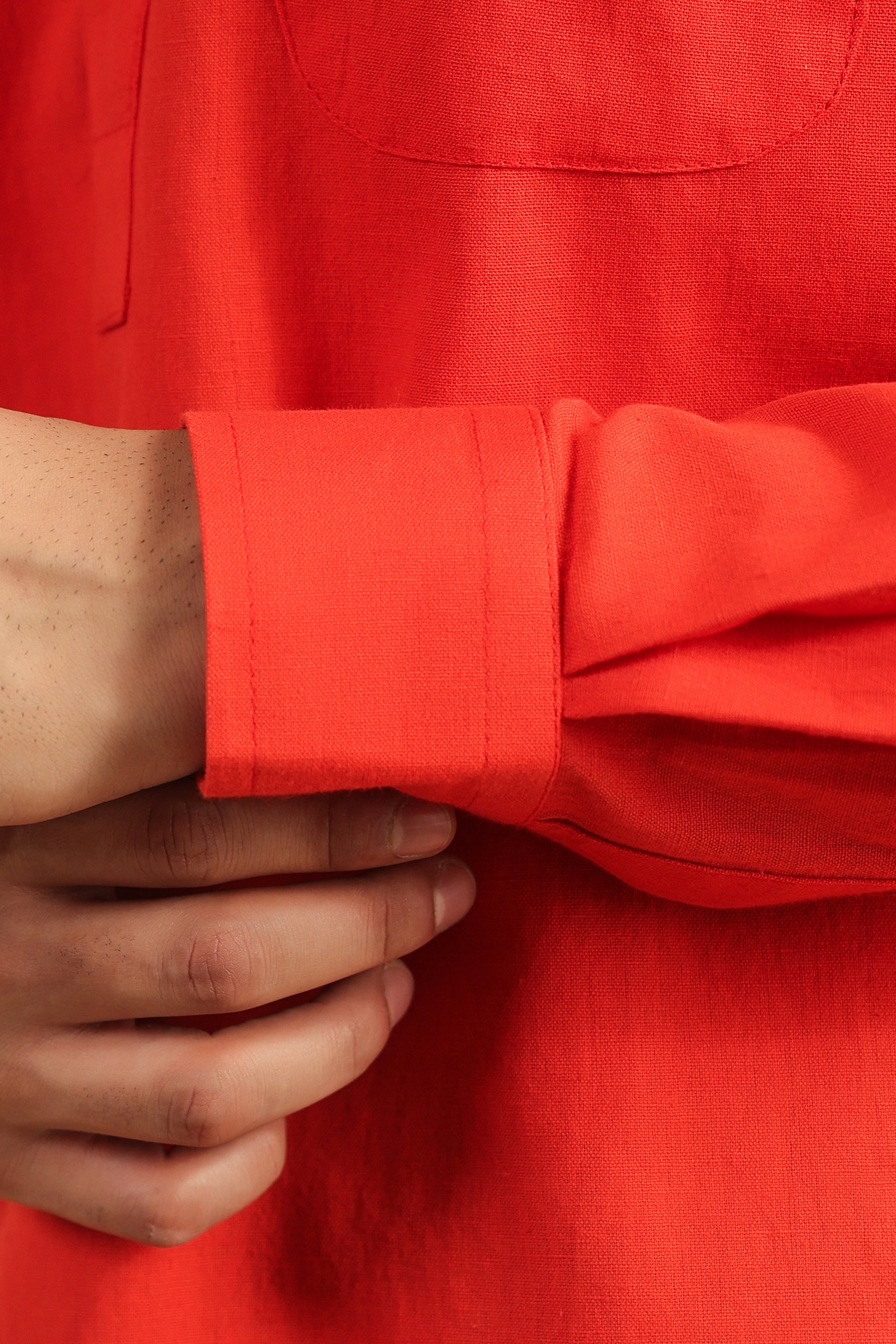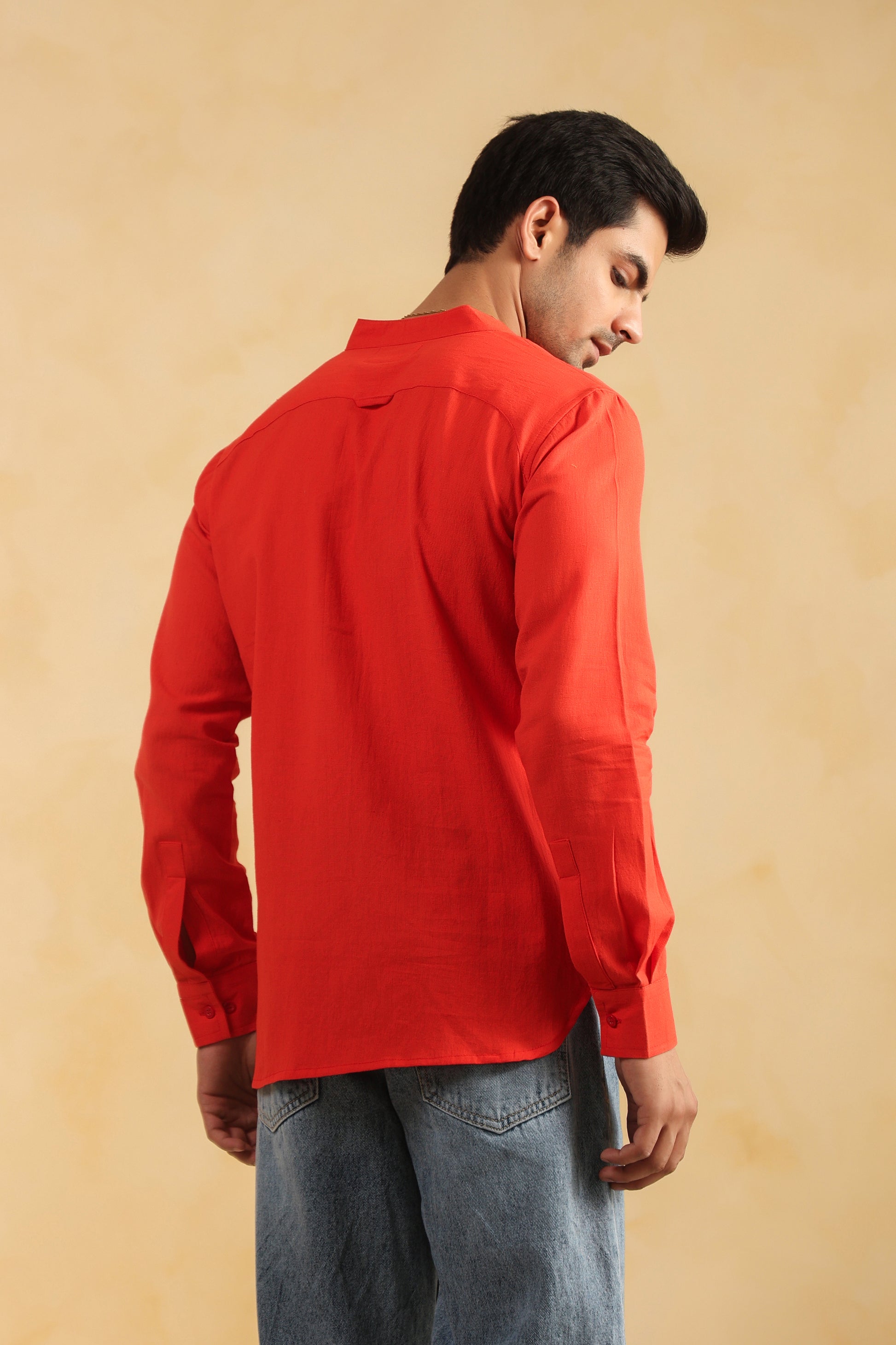 There’s a quiet power in simplicity. This kurta is made in a red that doesn’t shout, but still turns heads. The linen blend fabric feels light, easy, and honest, like something you reach for instinctively. With clean lines, careful hand stitching, and a sharp collar, it’s built for the man who doesn’t need extra to feel complete.