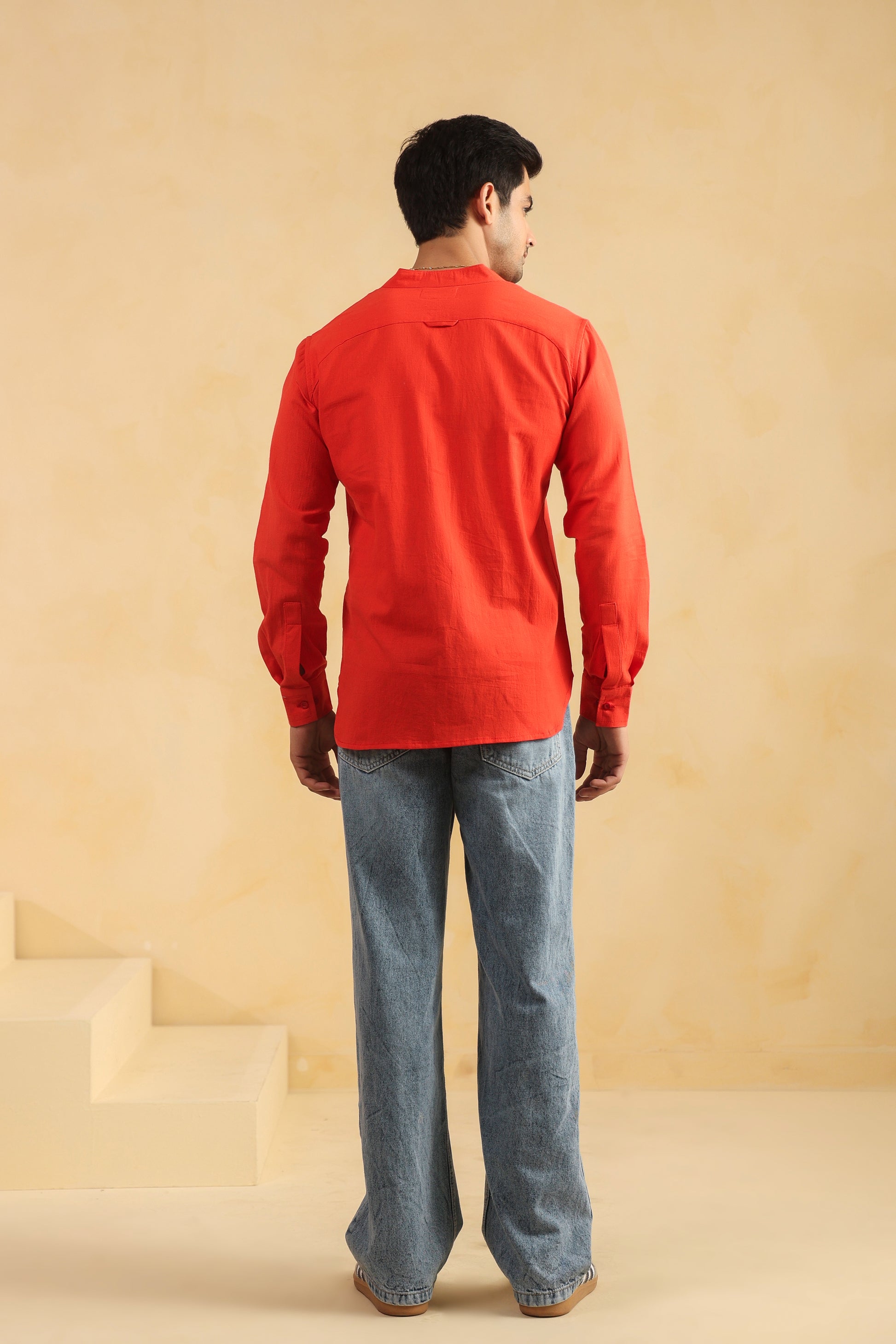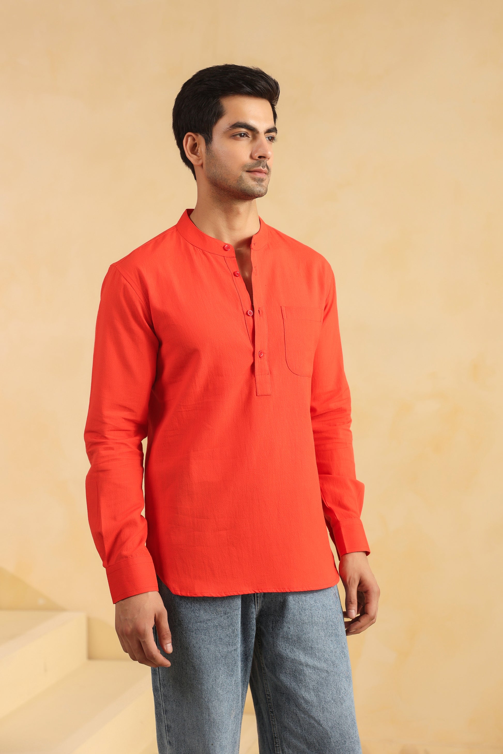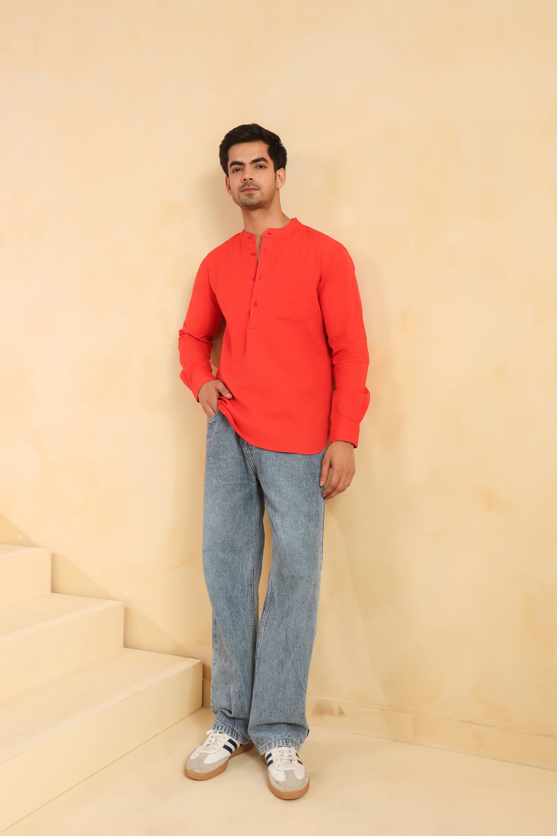 There’s a quiet power in simplicity. This kurta is made in a red that doesn’t shout, but still turns heads. The linen blend fabric feels light, easy, and honest, like something you reach for instinctively. With clean lines, careful hand stitching, and a sharp collar, it’s built for the man who doesn’t need extra to feel complete.