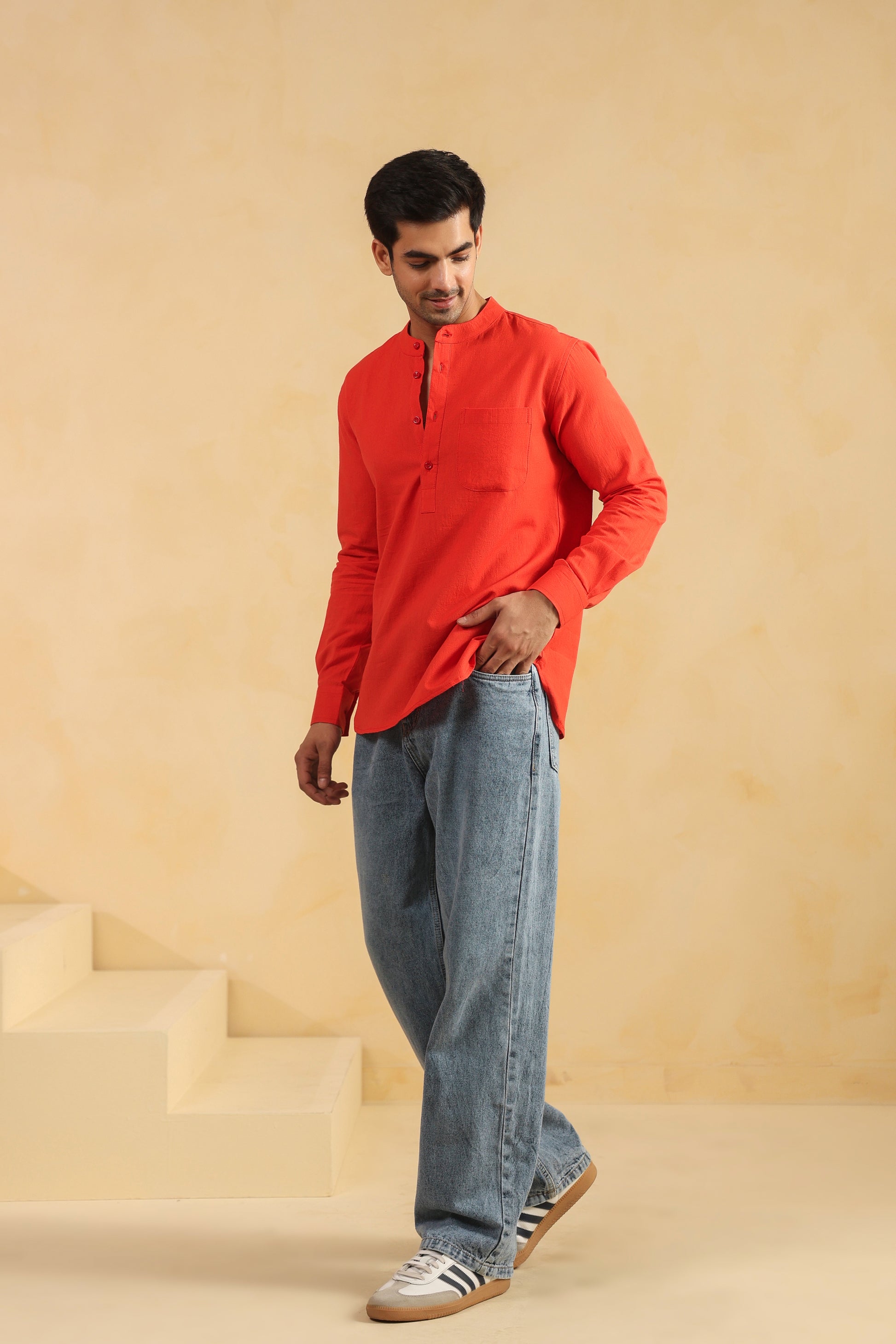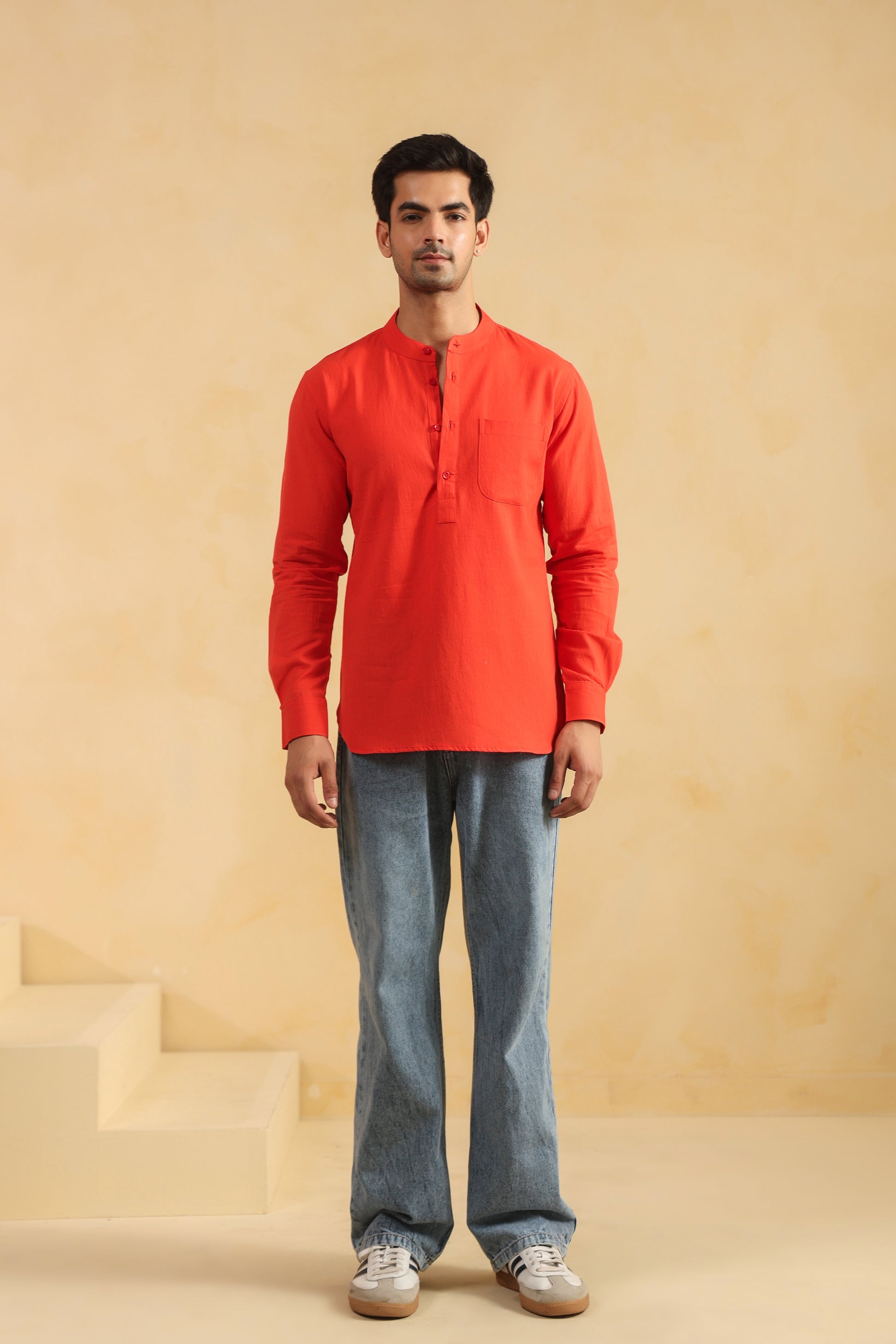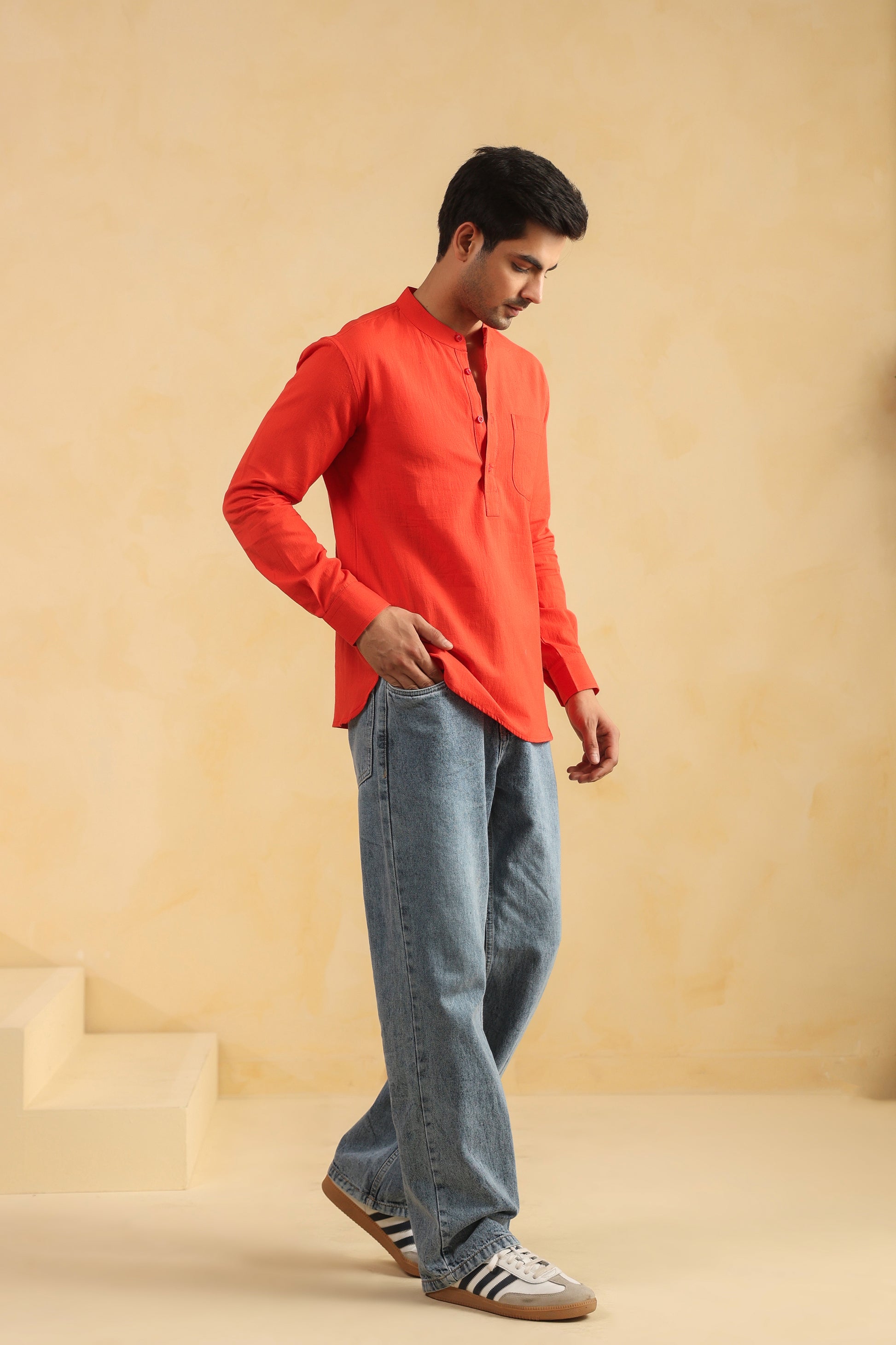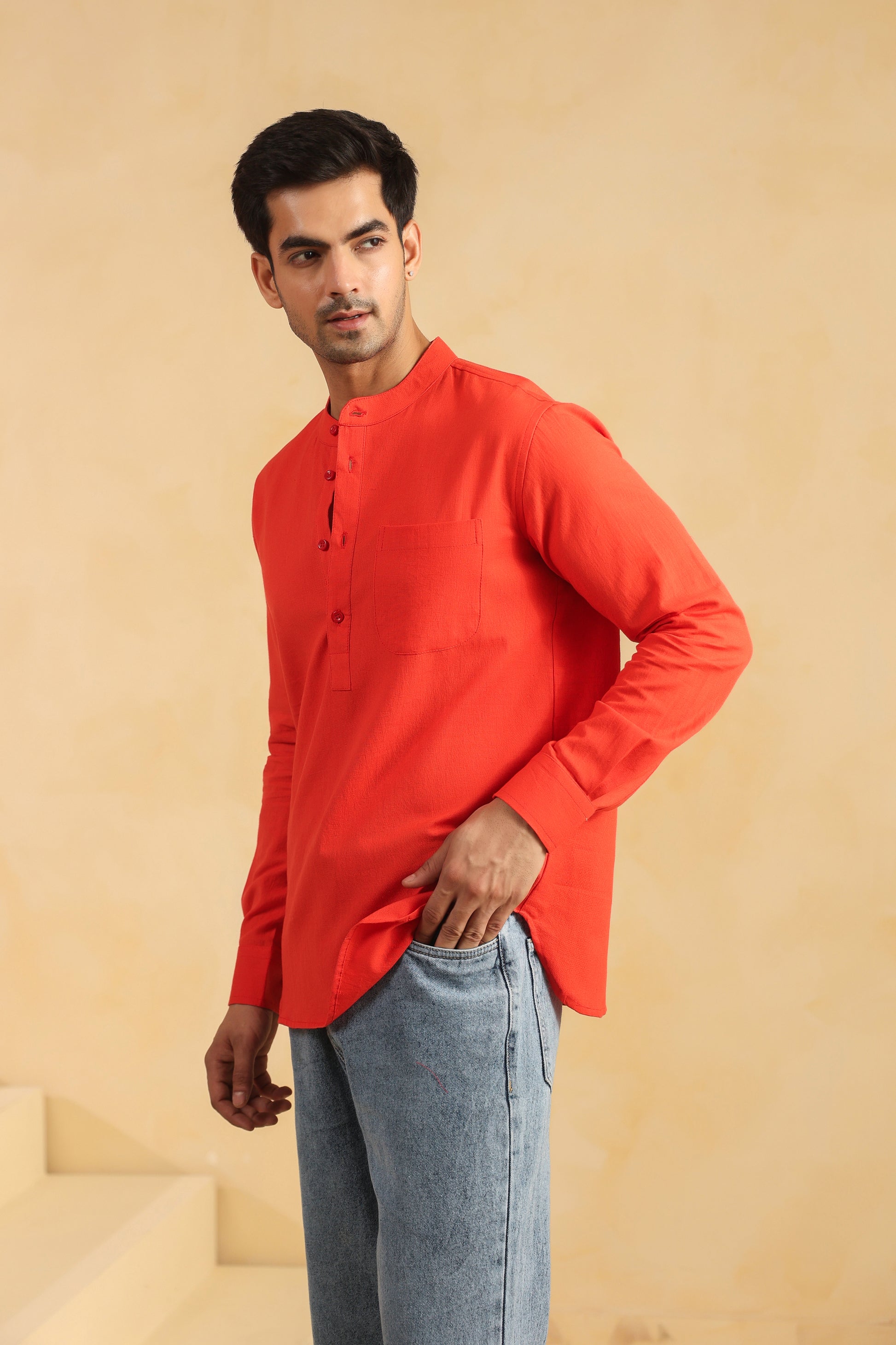 There’s a quiet power in simplicity. This kurta is made in a red that doesn’t shout, but still turns heads. The linen blend fabric feels light, easy, and honest, like something you reach for instinctively. With clean lines, careful hand stitching, and a sharp collar, it’s built for the man who doesn’t need extra to feel complete.