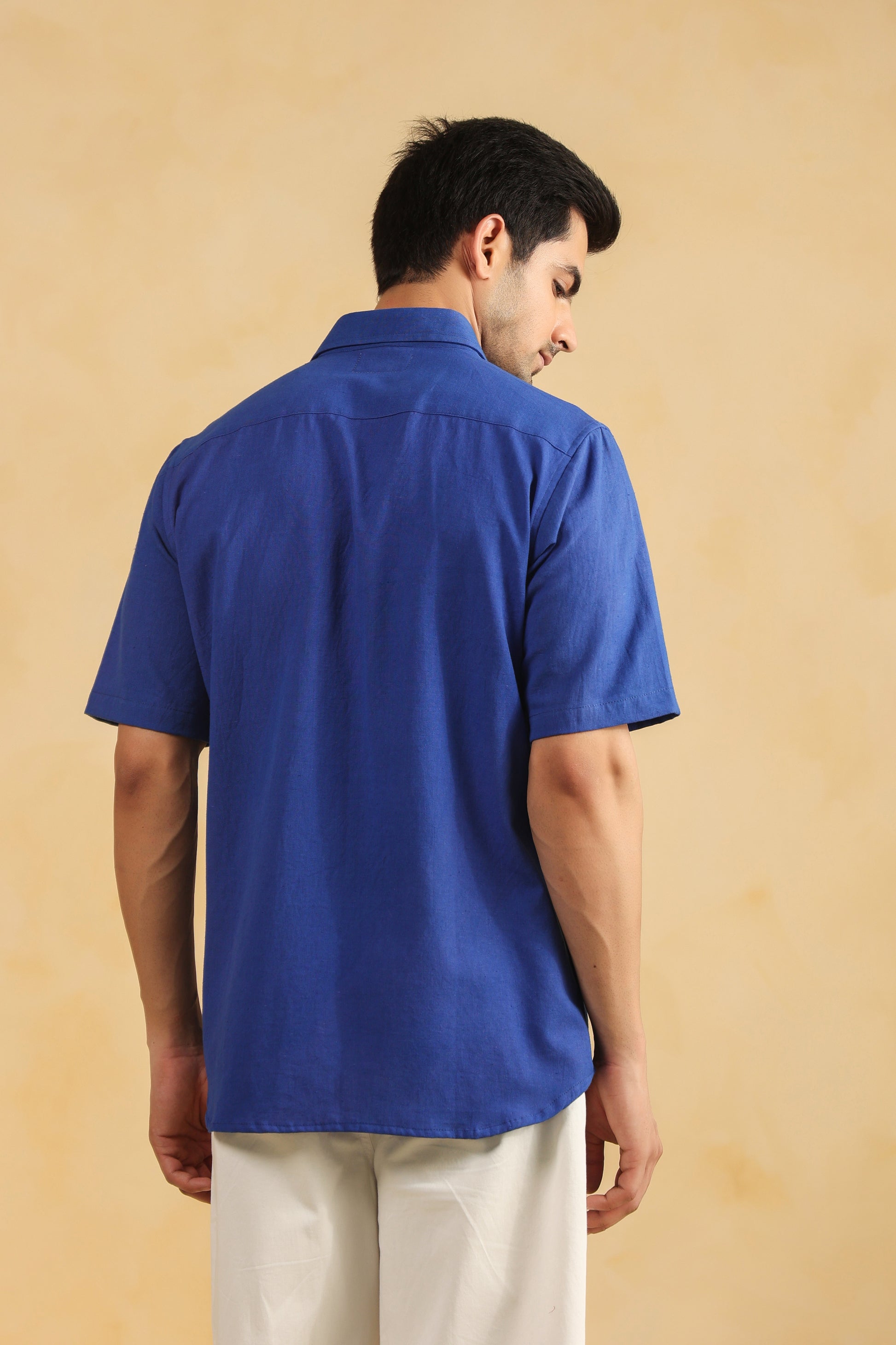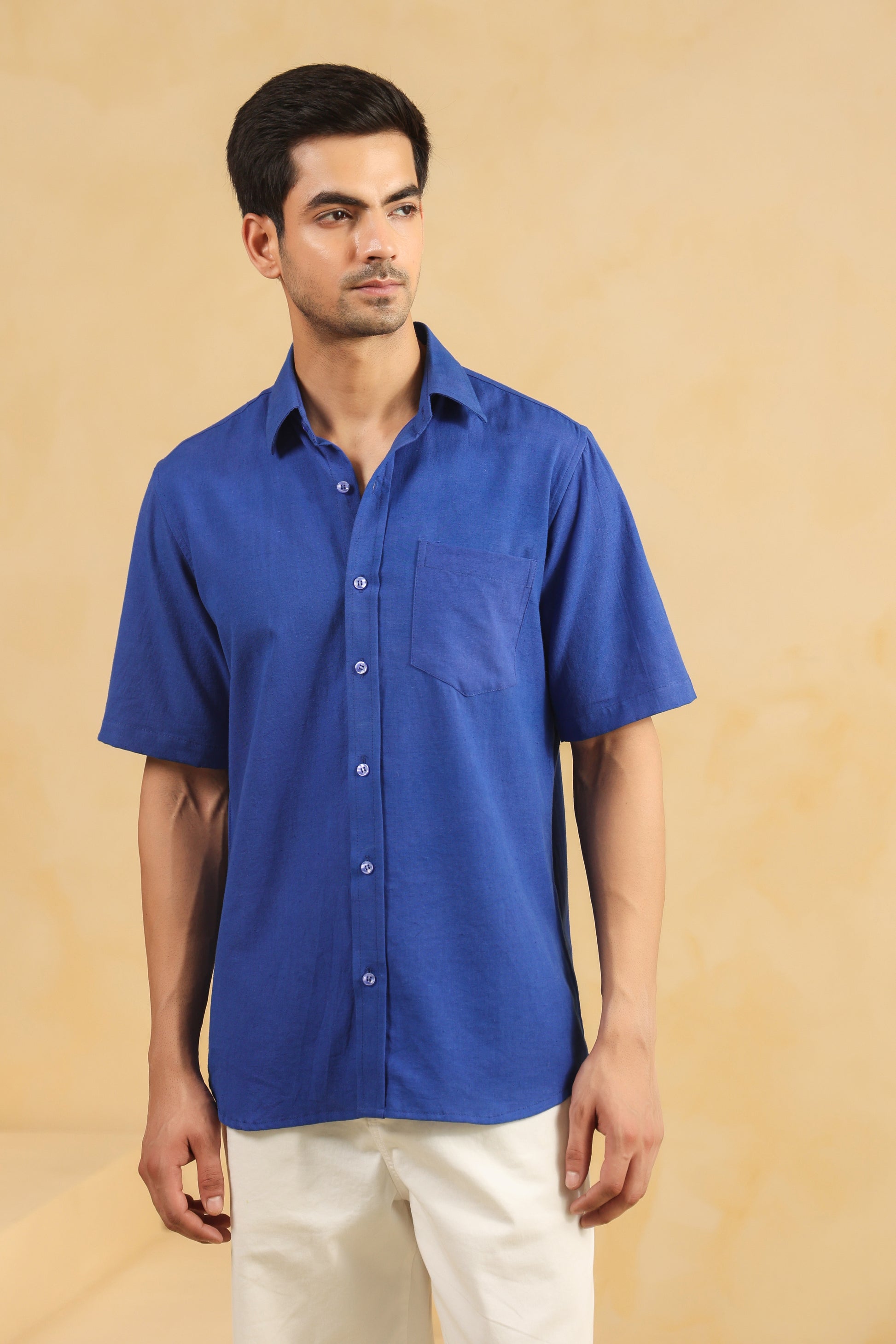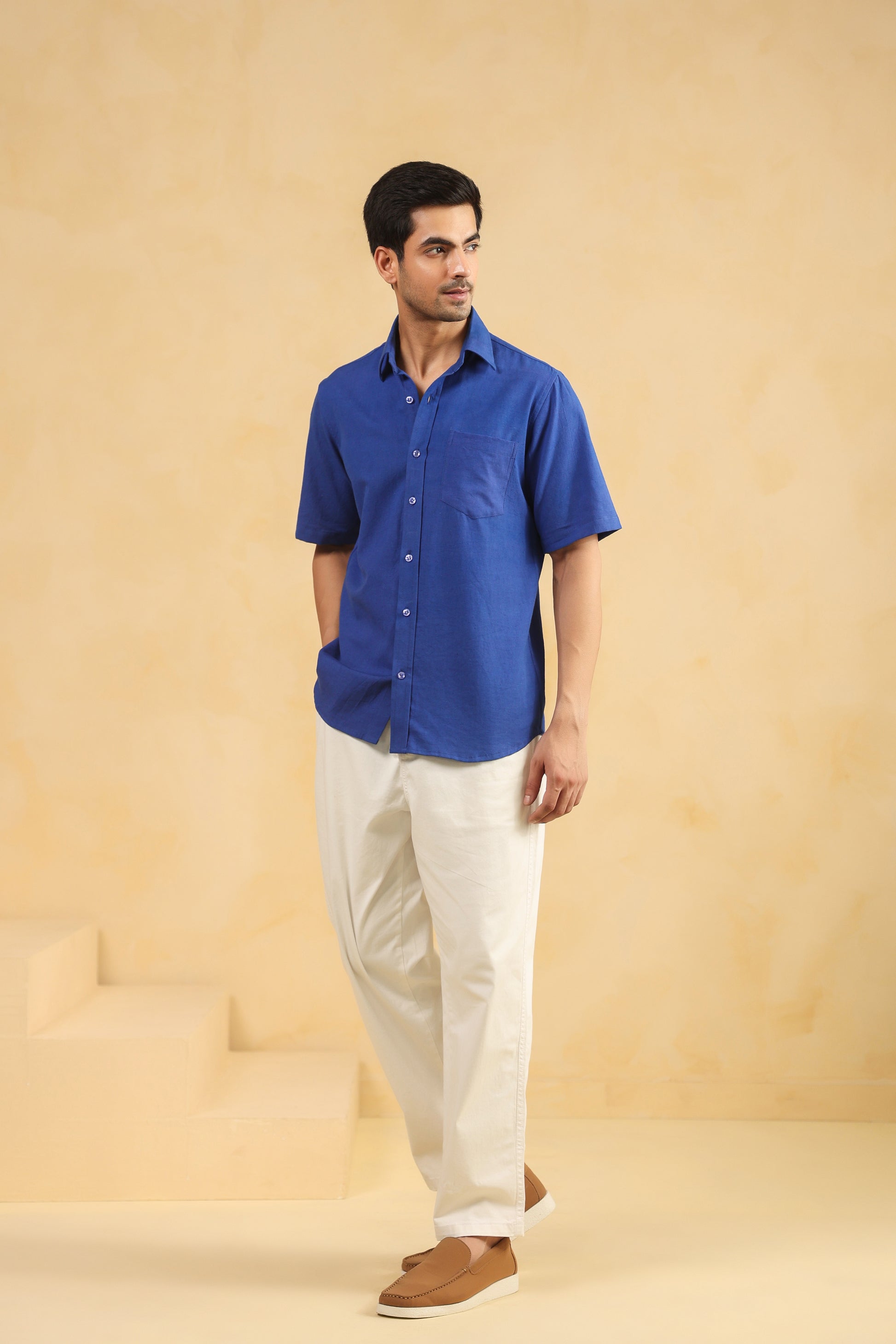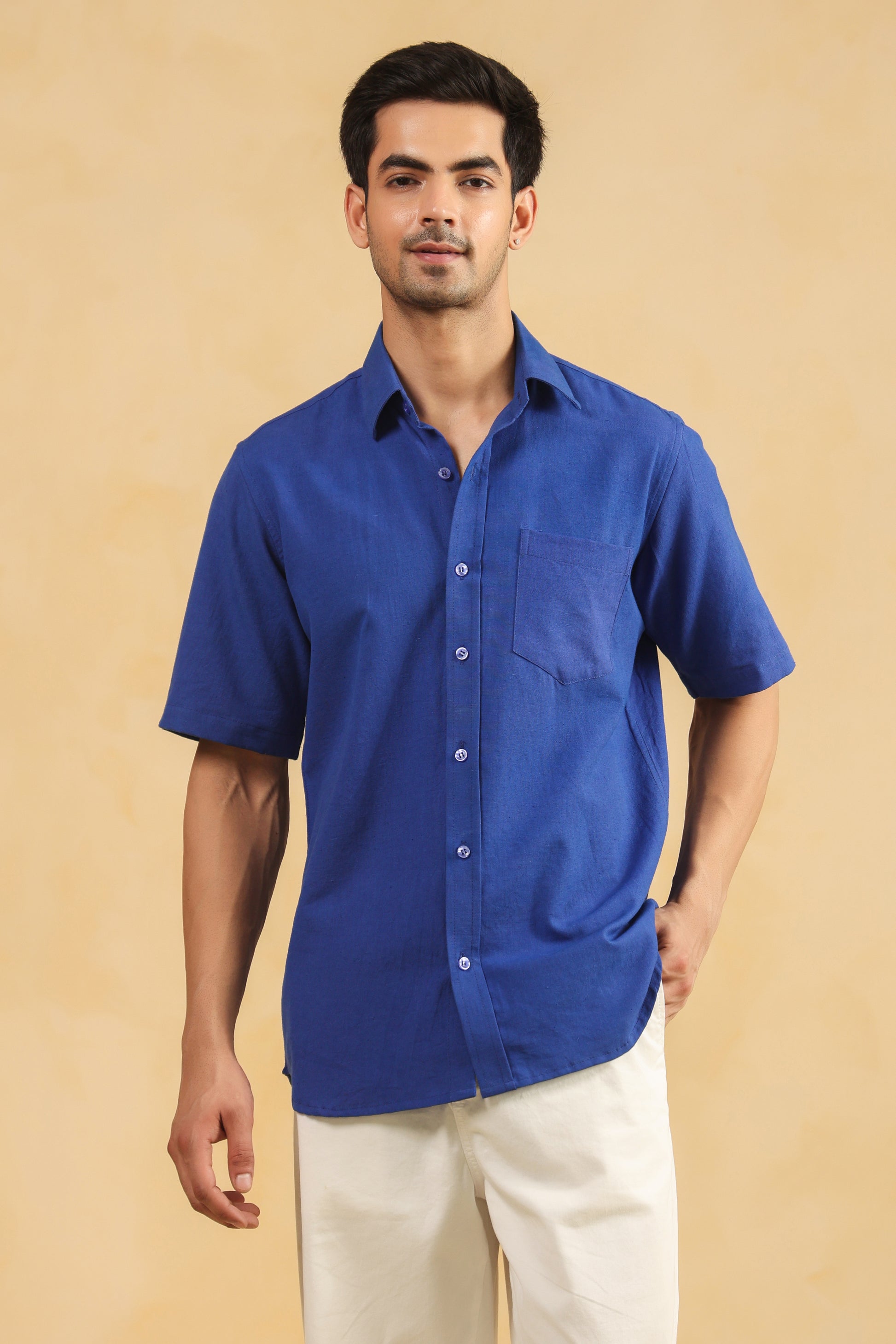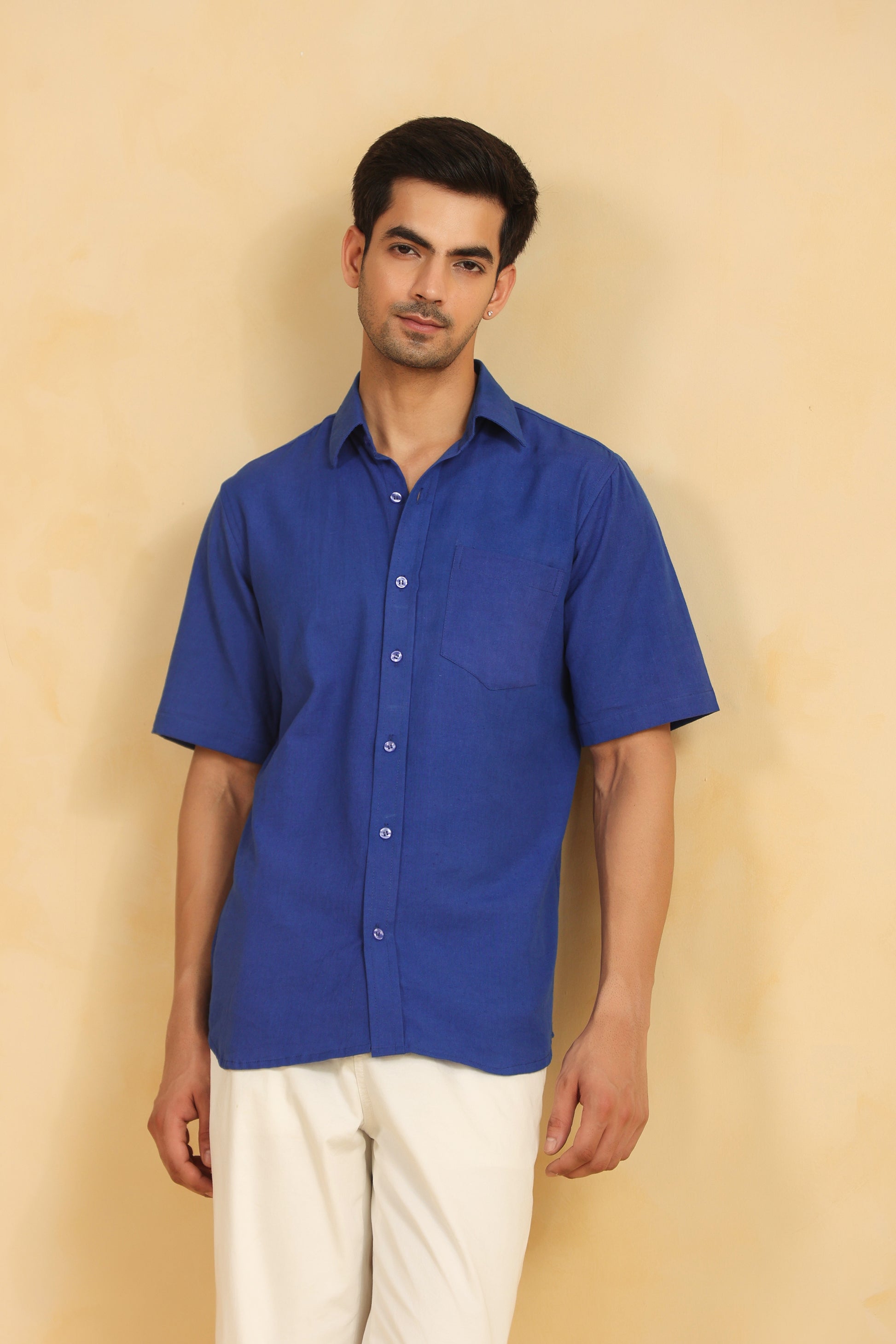 This regular fit shirt is made in blended linen fabric. This is hand stiched and perfect for any weather.