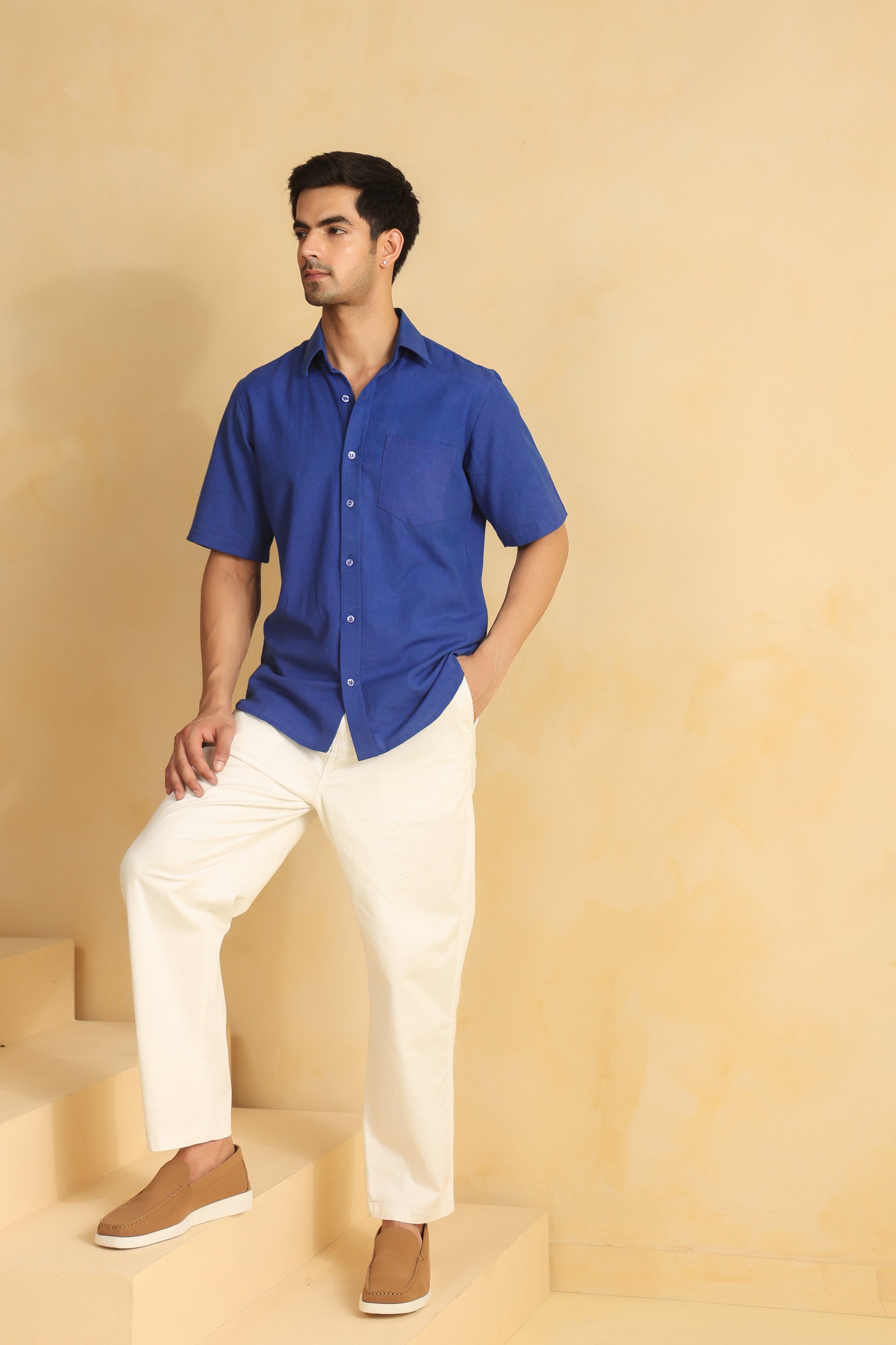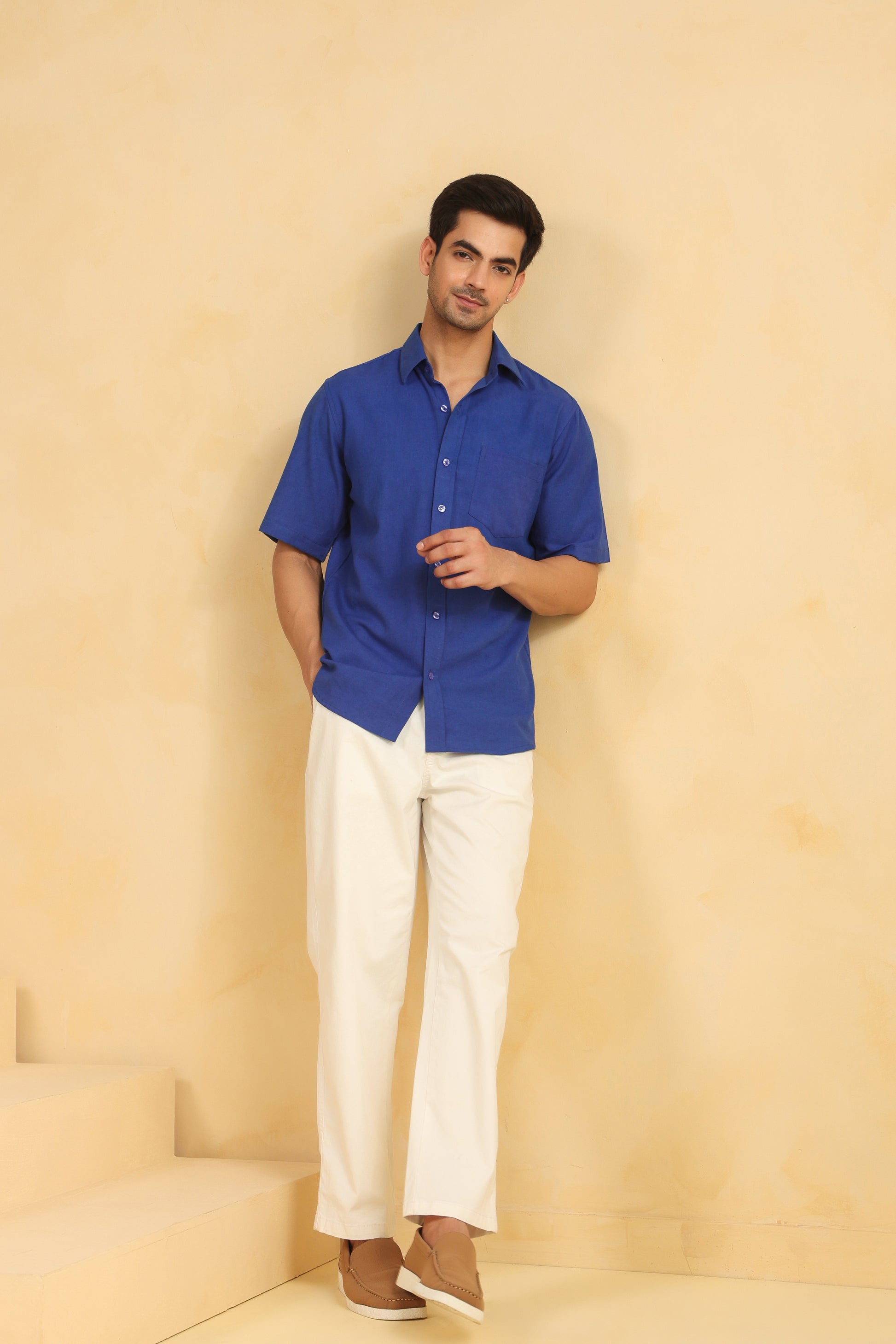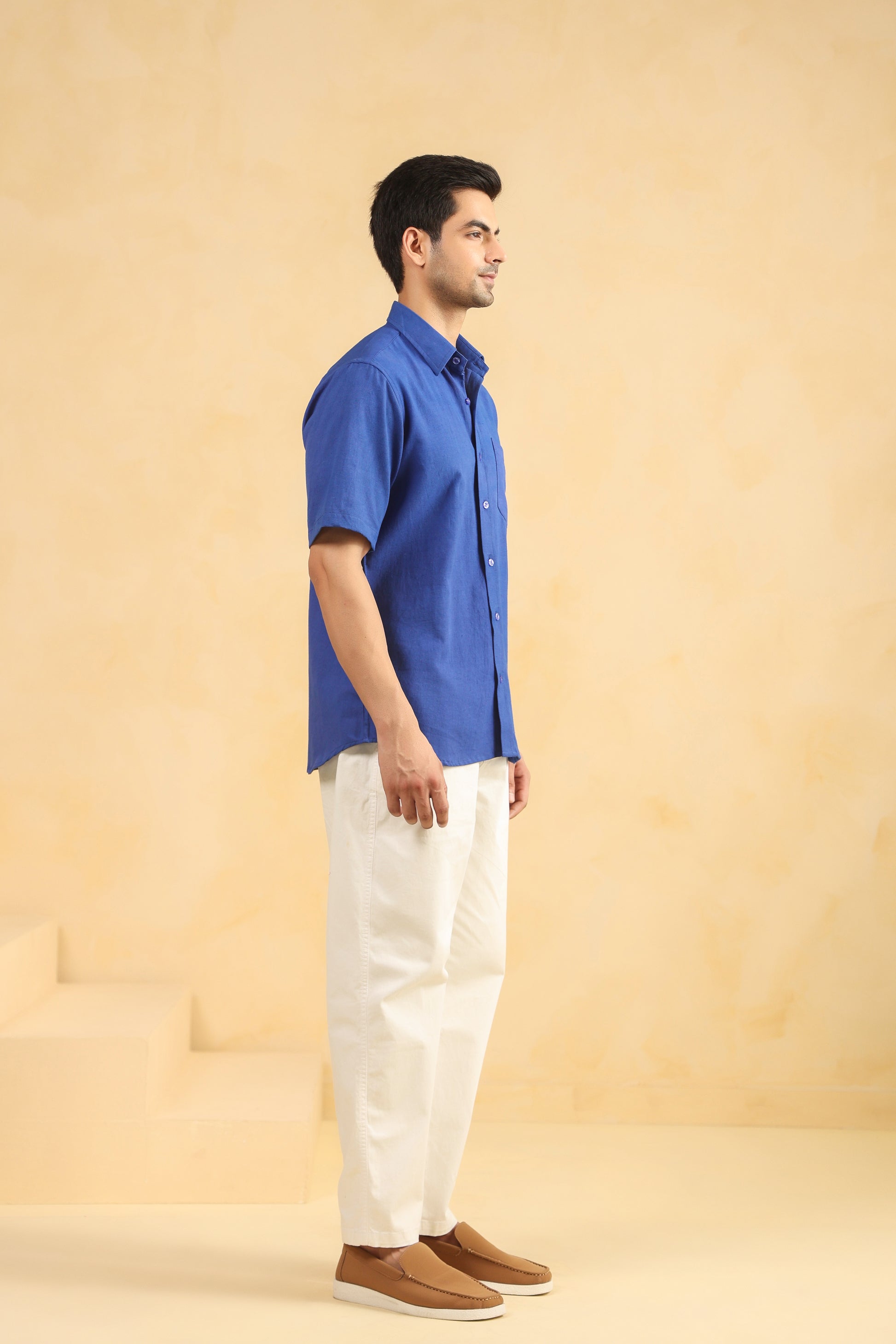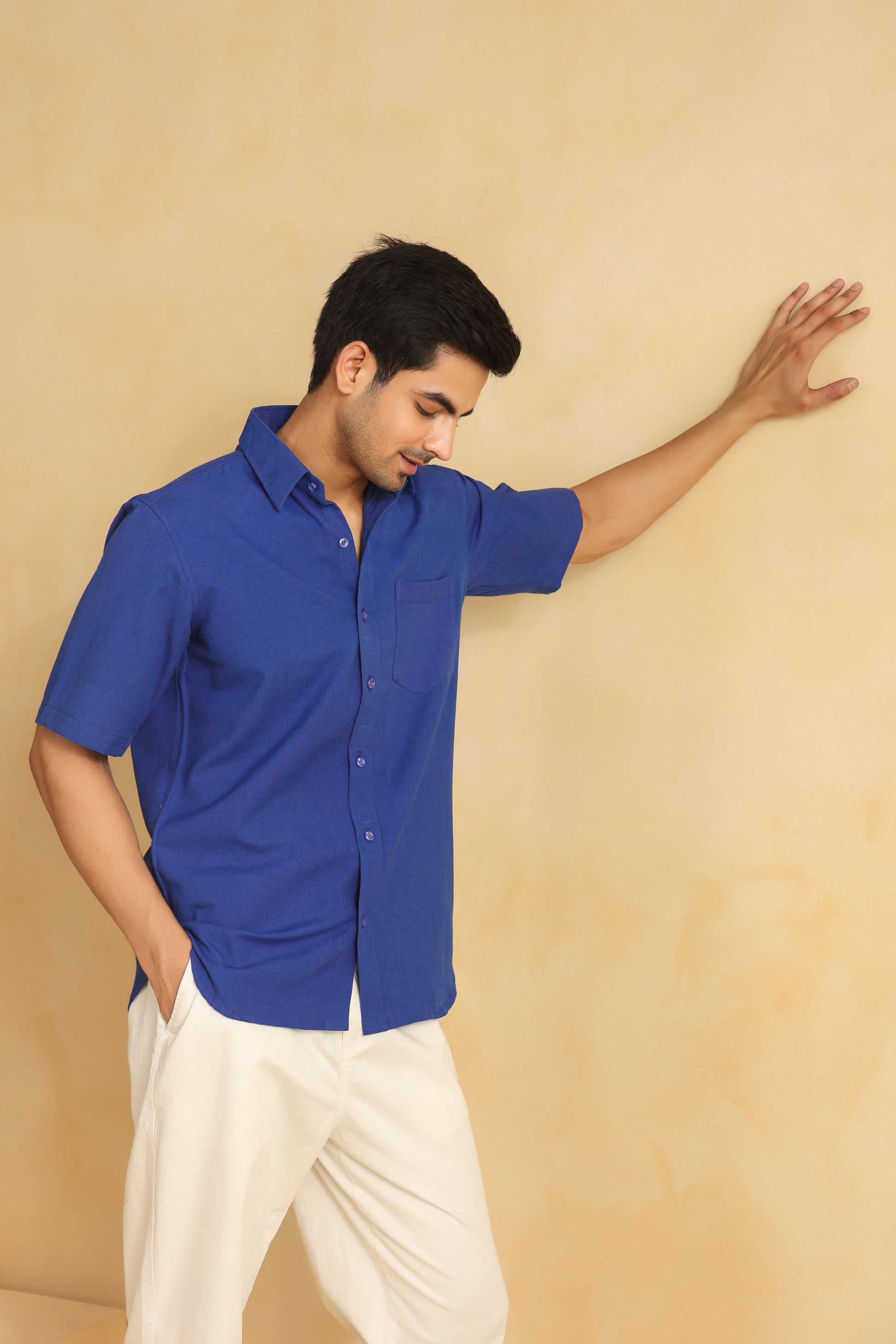 This regular fit shirt is made in blended linen fabric. This is hand stiched and perfect for any weather.