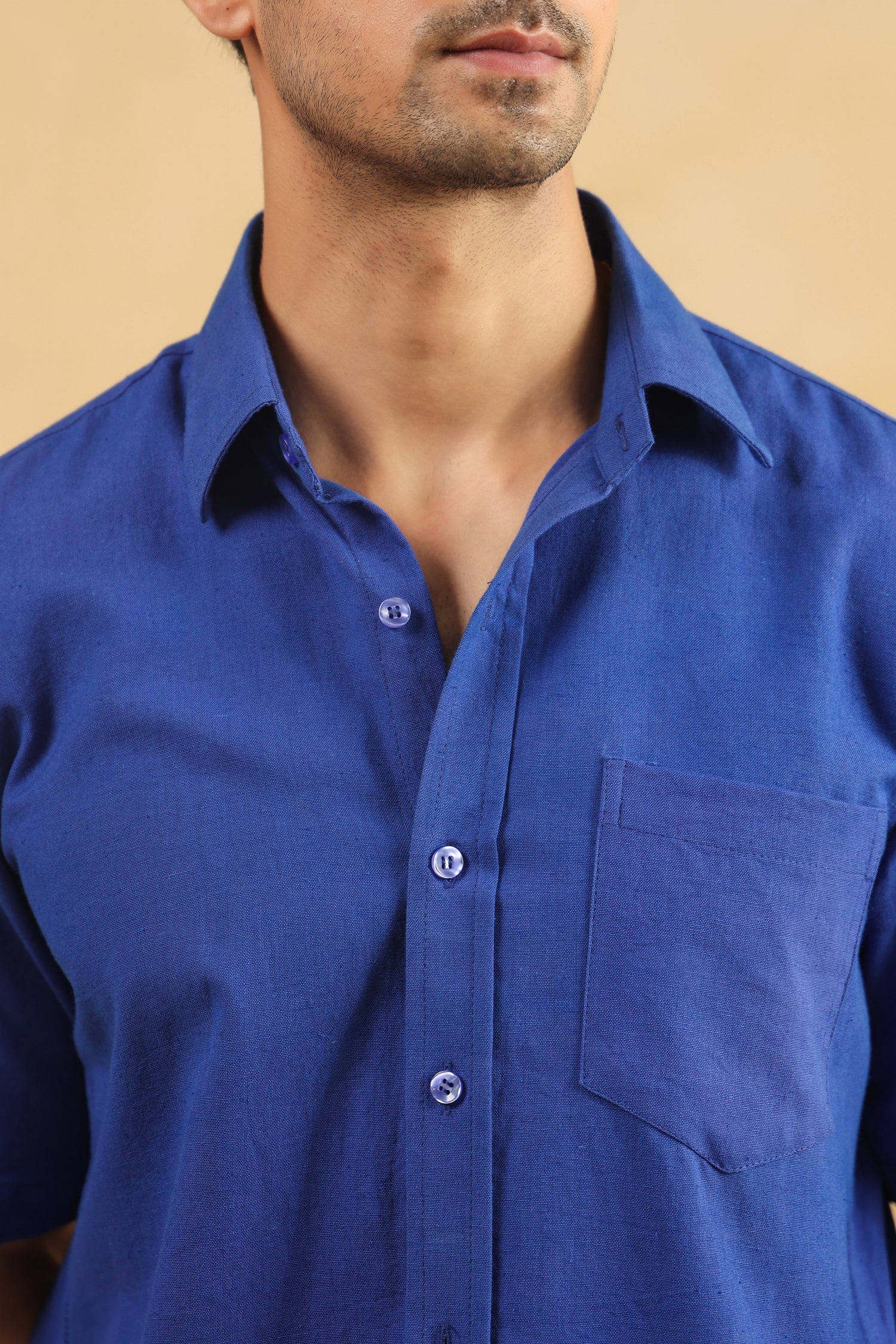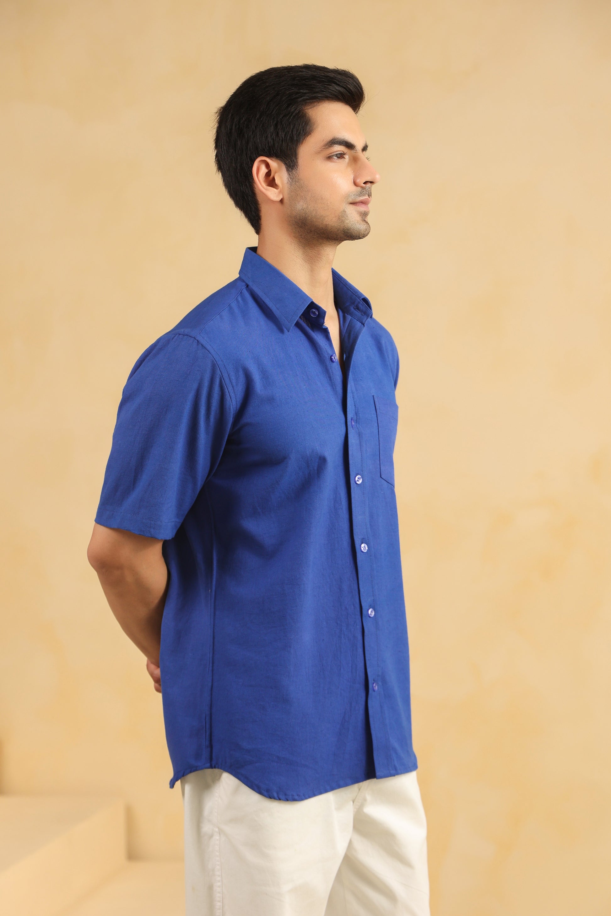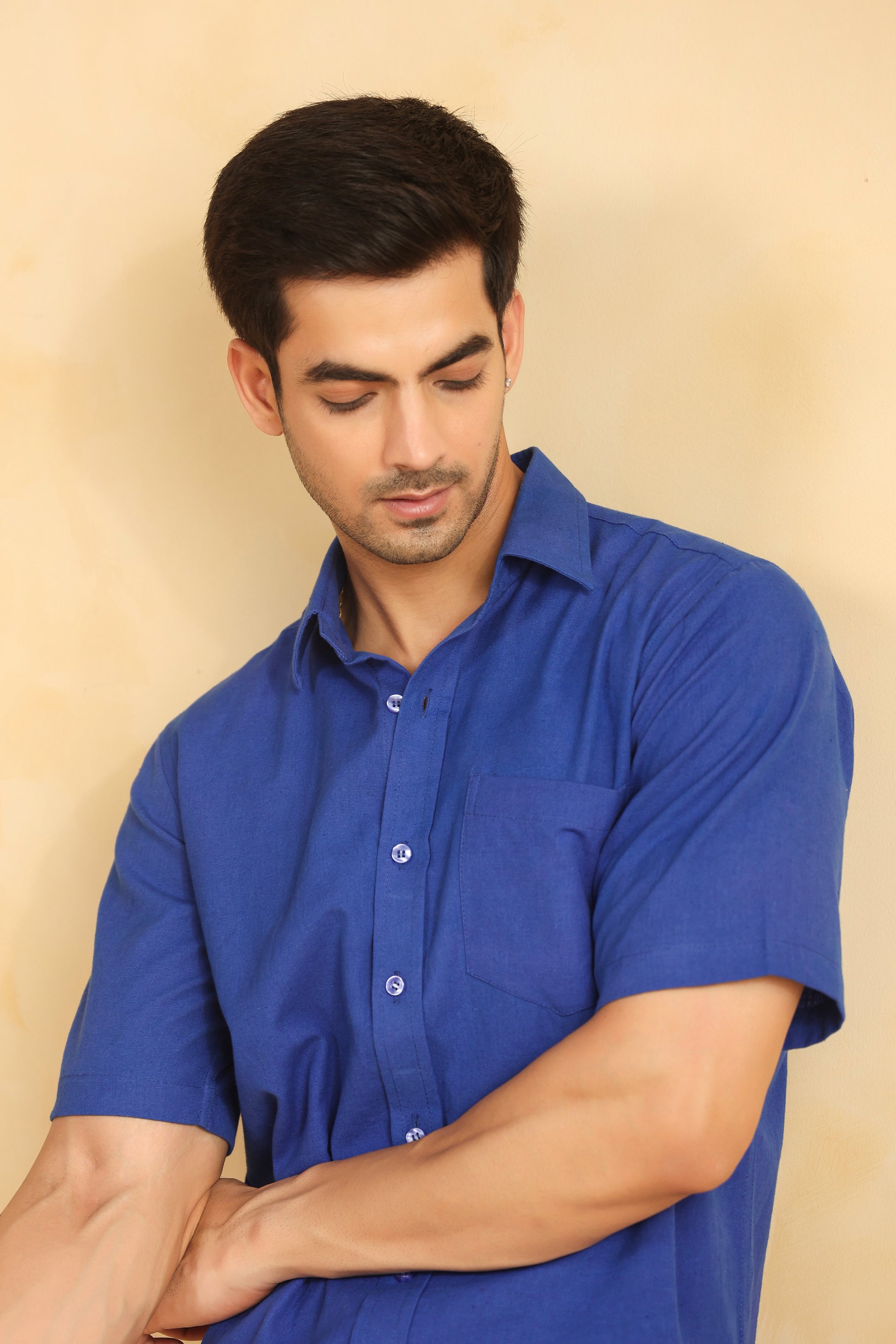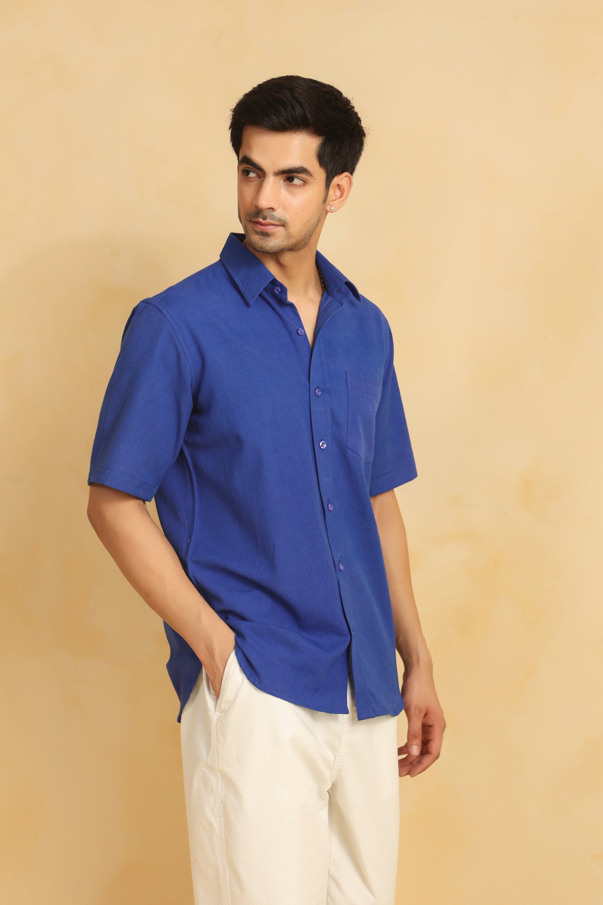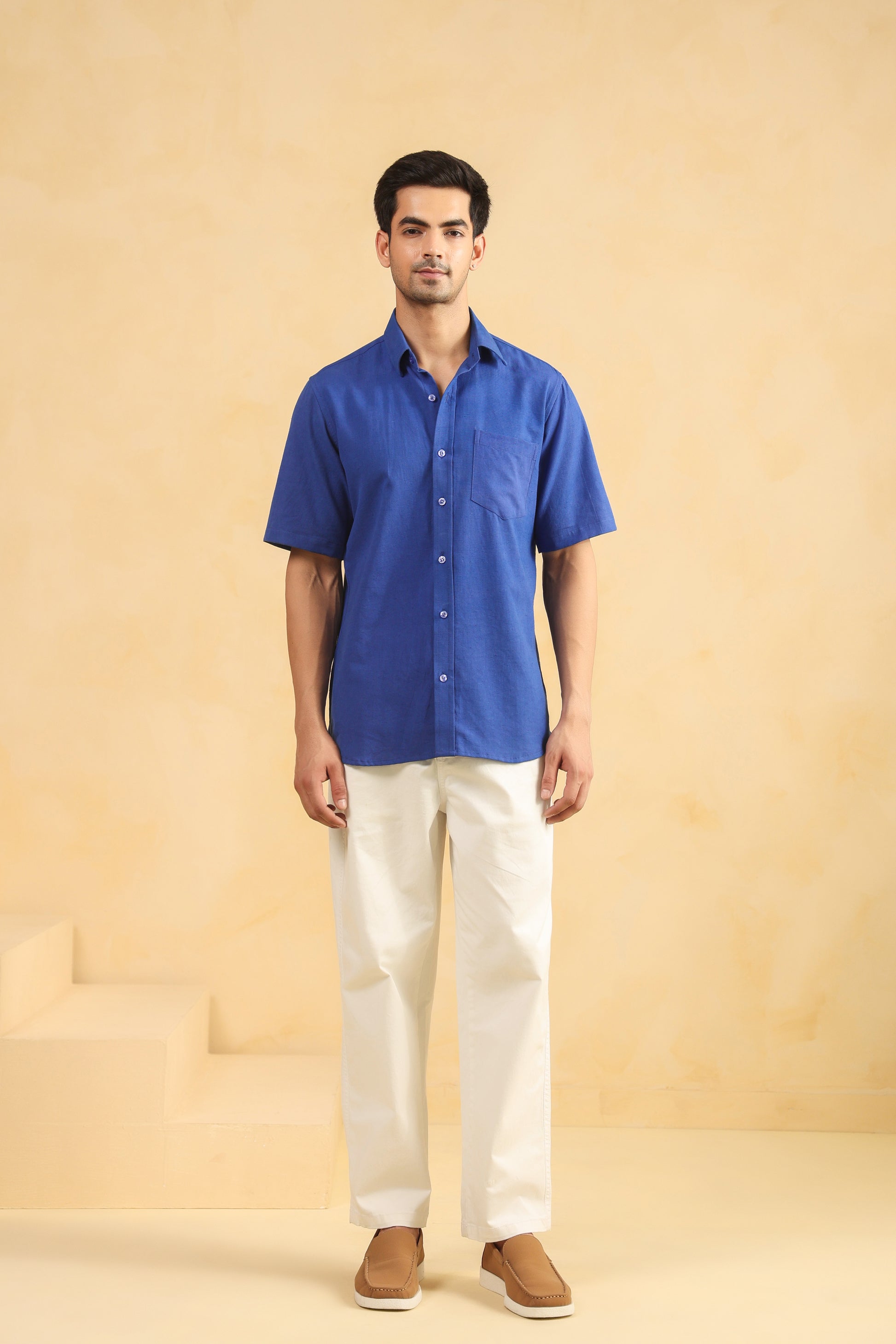 This regular fit shirt is made in blended linen fabric. This is hand stiched and perfect for any weather.