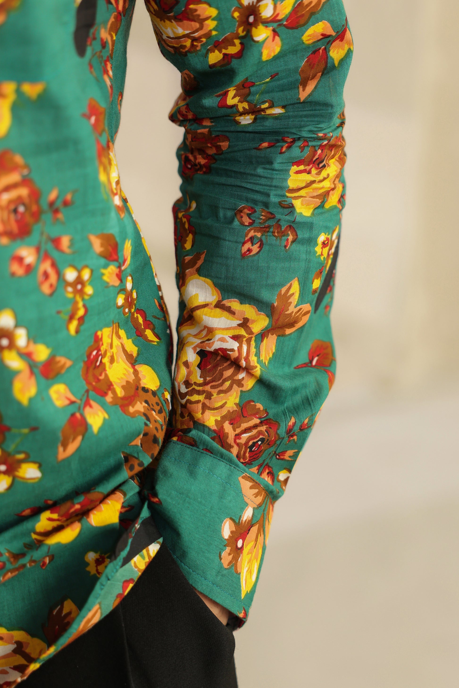 Teal floral Regular Shirt kurta